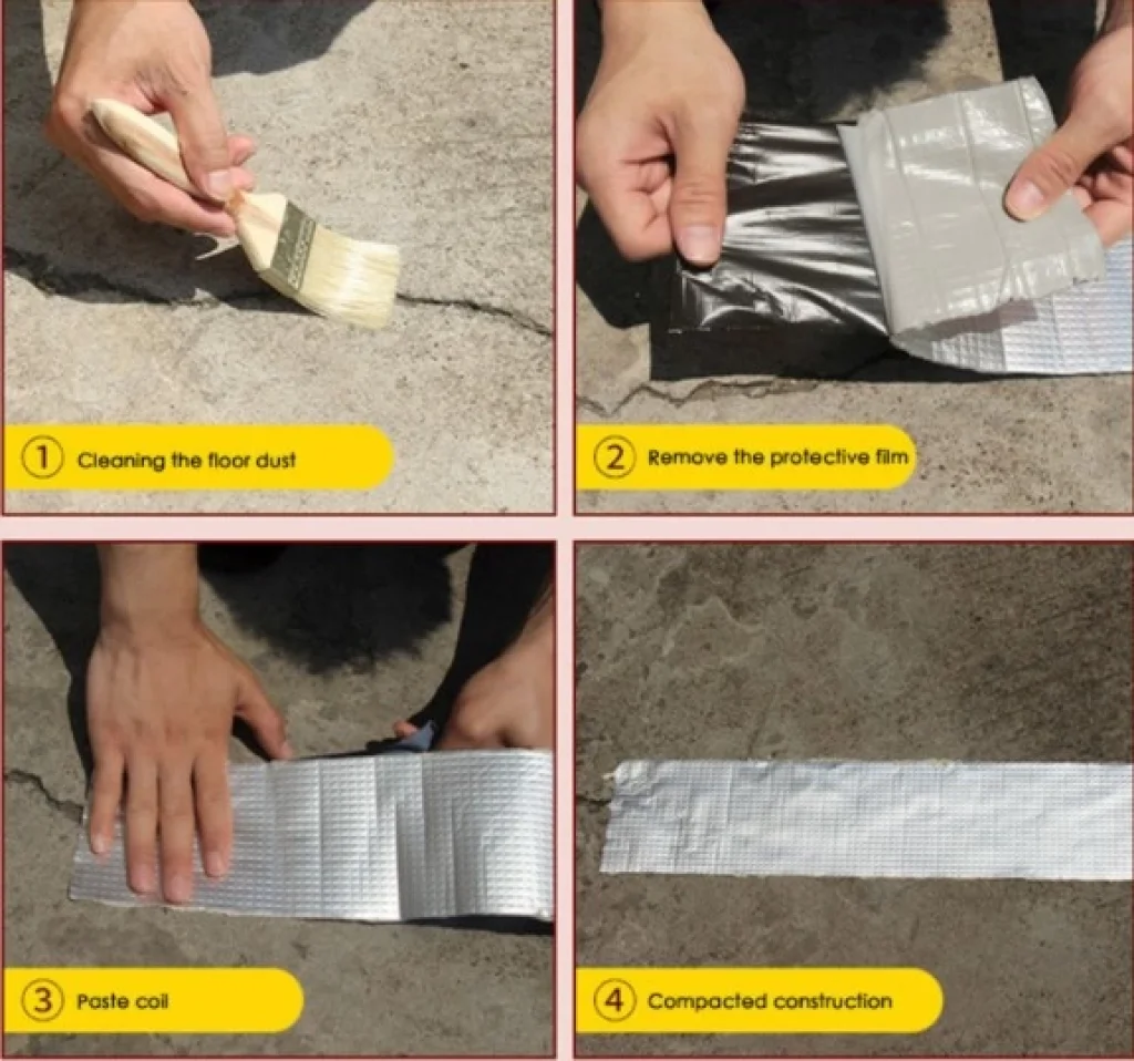 Güçlü yapıştırıcı Alüminyum folyo yapışkan bant, cam, çimento zemin, fayans, ahşap ,boru ve benzeri dahil olmak üzere her türlü yüzeye yapışabilir.