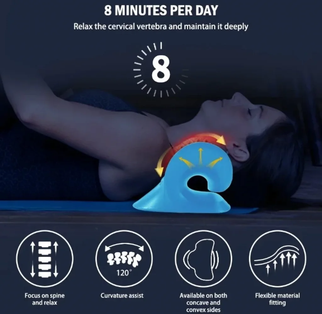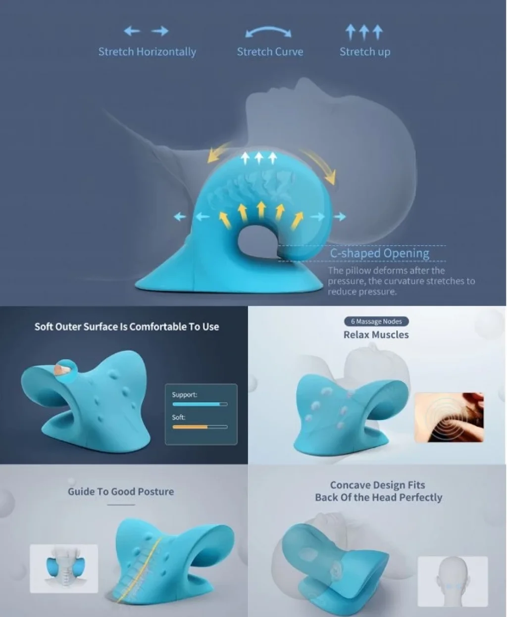 Yastık boyun ve sırtta ağrı ve rahatsızlığı hafifletmeye yardımcı olan servikal kayropraktik çekiş sağlar. Boyun ve omuz çevresinin gevşemesini sağlar.