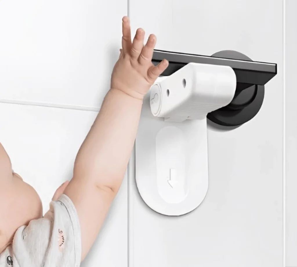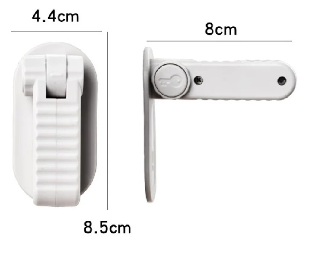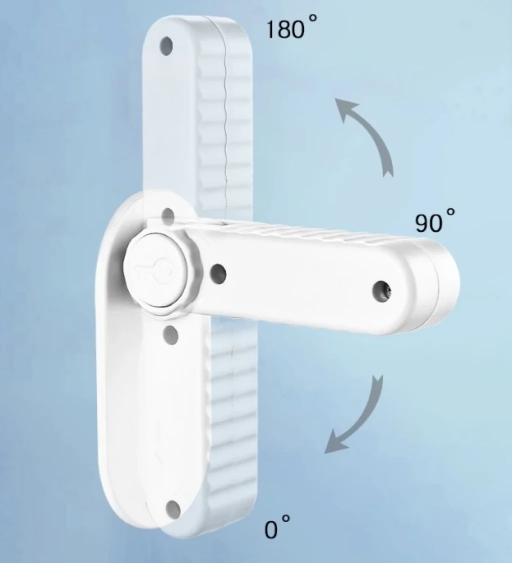 Kapı kilidi 180 derecelik bir dönme tasarımına sahiptir ve bir düğmeye basılarak kapanır ve açılır Çocuğunuzun kapıyı açmasını etkili bir şekilde önleyebilirsiniz.Bebeklerin kaçmasını veya kaçmasını önler.Beyaz renktedir.Kurulum Yöntemi:1. Gerekli kurulum alanının yüzeyini temizleyin.2. Bebek geçirmez kilidini kapıya takmak için arkadaki bandı kullanın.3. Yapışmayı artırmak için çocuk güvenlik kolu kilidini 10 saniye veya daha uzun süre bastırın.4. Kilitlemek ve kilidini açmak için düğmeye basın.