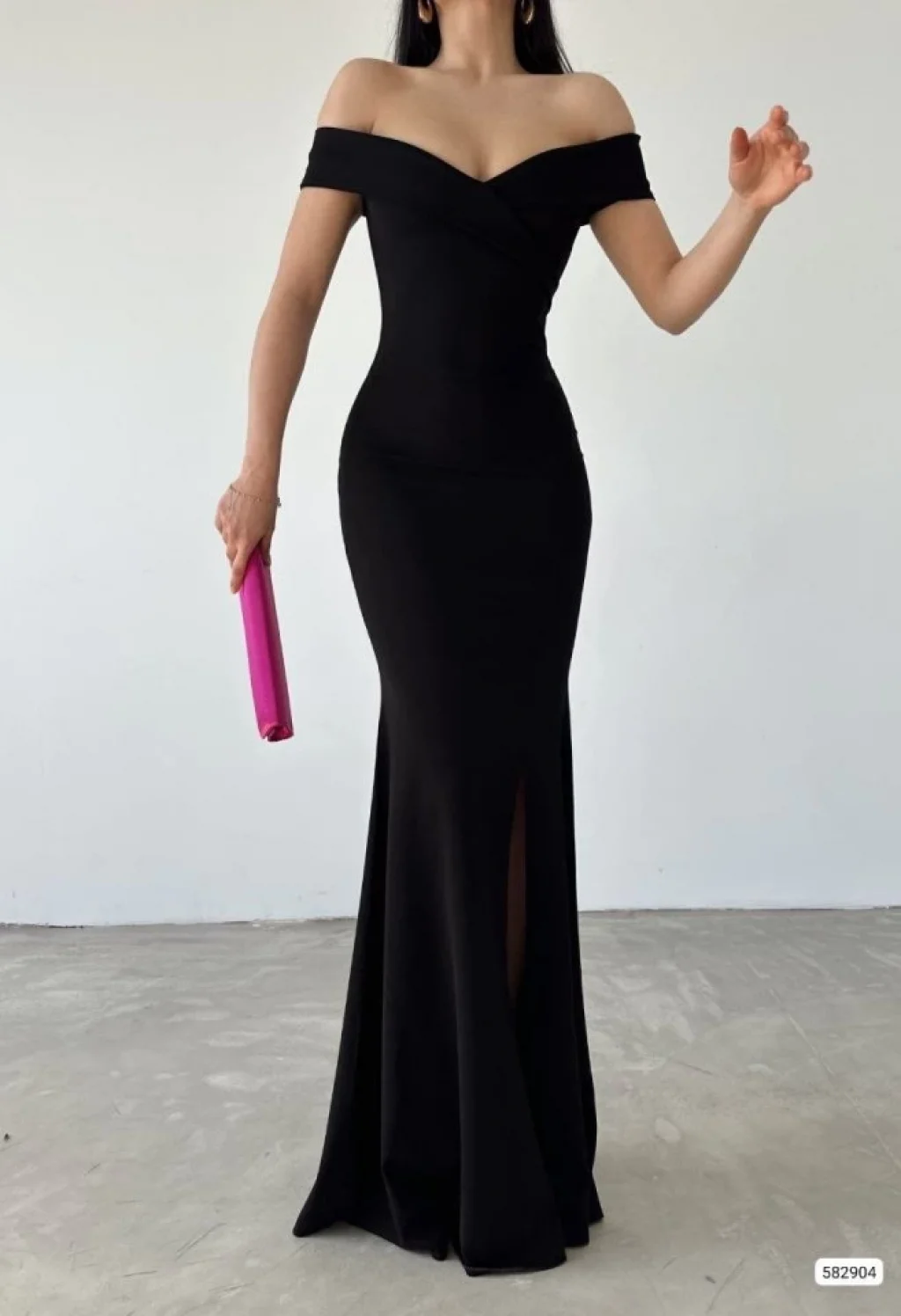 Kadın Dalgıç Kumaş Kayık Yaka Ve Dekolte Detaylı Elbise