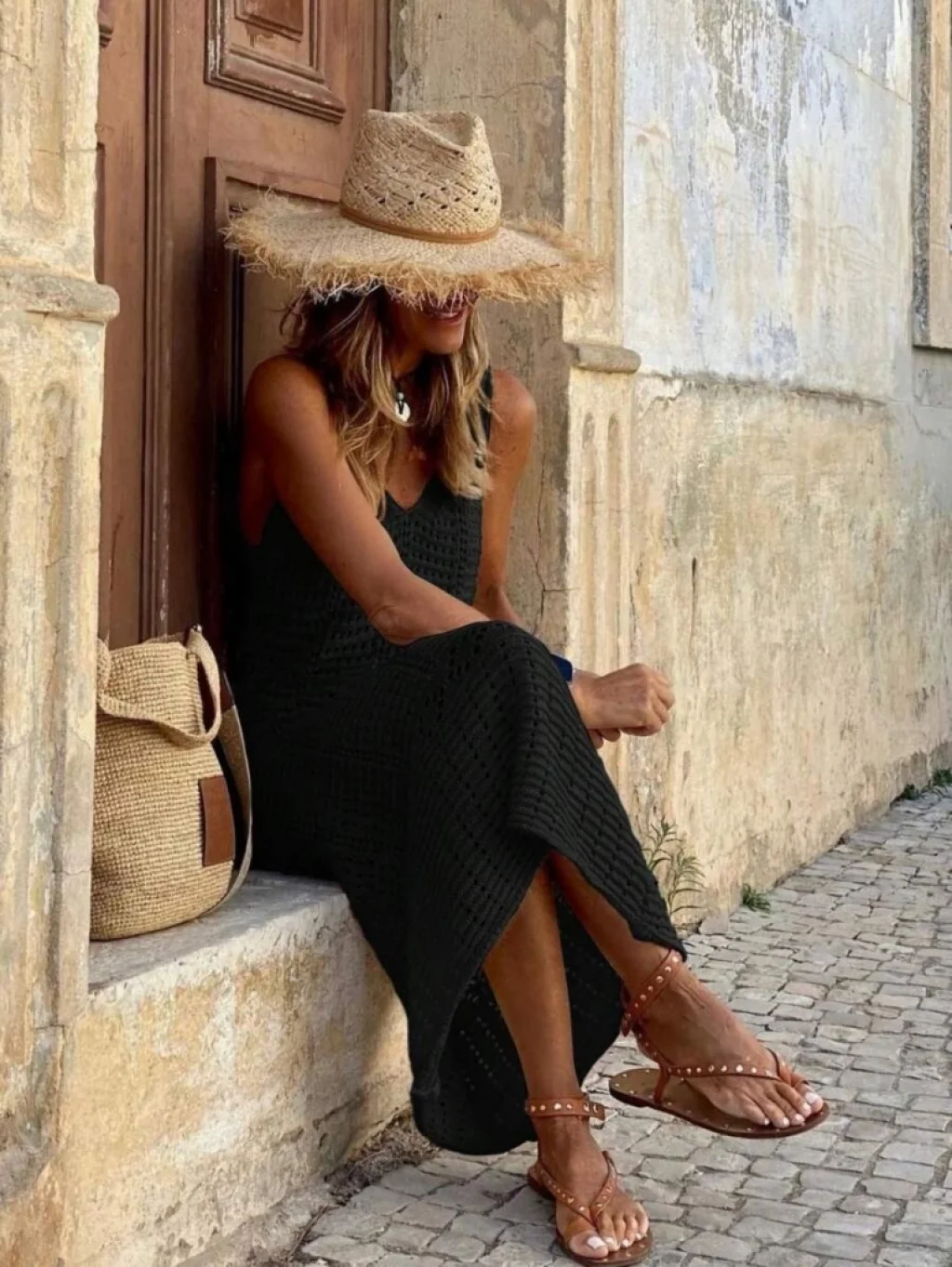 <p>Kadın V Yaka Tam Askılı Tam Boy Ajurlu Triko Elbise</p><br> <p>Modelin Ölçüleri: Boy:165, Kg:55, Göğüs:90, Bel:72, Kalça: 100</p><br> <p>Modelin üzerindeki ürün M/38 bedendir</p><br> <ul> <li>TARZ-Diğerleri</li><li>YAKA-Diğerleri</li><li>DESEN-Diğerleri</li><li>KOL UZUNLUK-Kolsuz</li><li>UZUNLUK-Maxi Boy</li><li>EK OZELLIKLER-Boş/Ek özellik Yok</li><li>TARZ-Diger</li><li>KAPATMA TURU-Diger</li><li>KALIP-Diger</li> </ul>