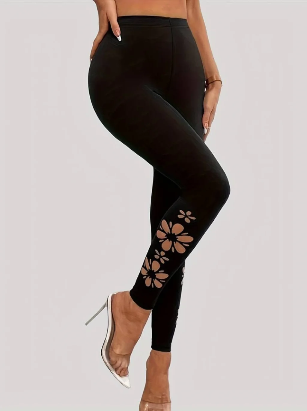 Kadın Yanları Lazer çiçek Kesim Yüksek Bel Dalgıç Tayt