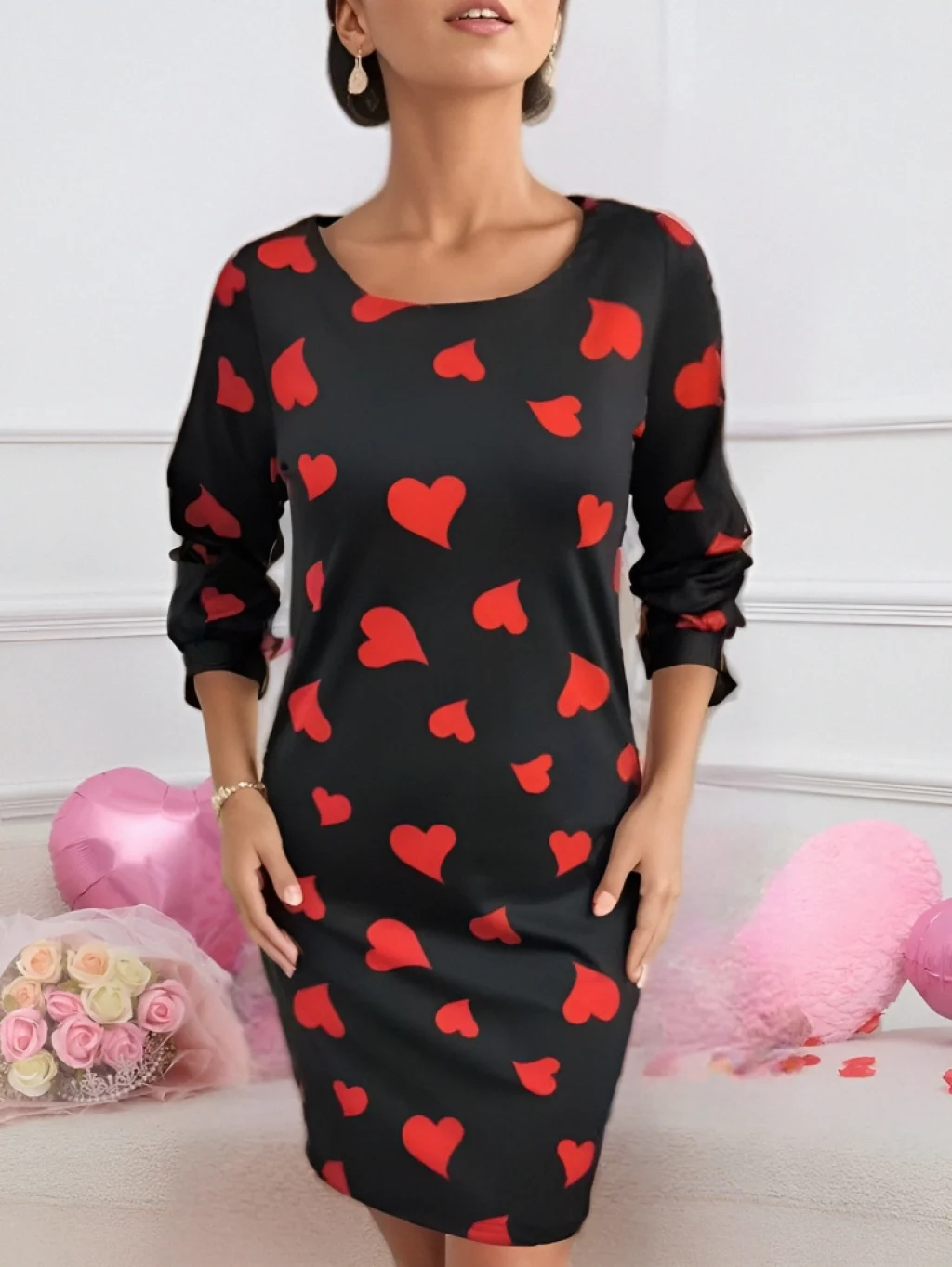 Kadın Uzun Kollu Bisiklet Yaka Dalgıç Mini Boy Elbise