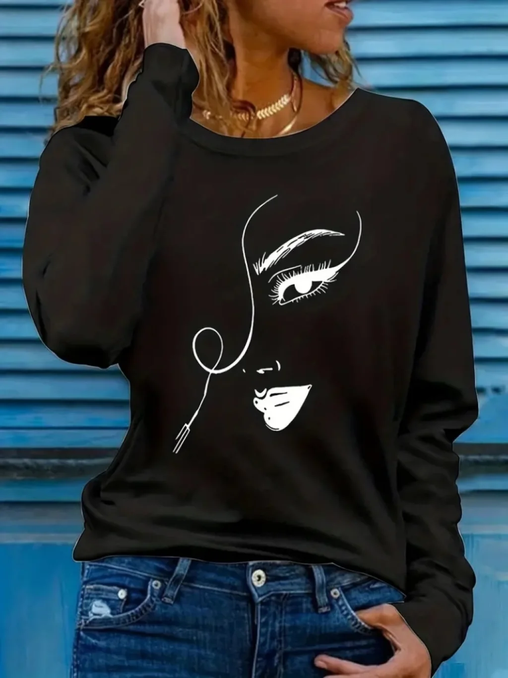 Kadın Uzun Kollu Bisiklet Yaka Yüz Desenli Viskon Bluz
