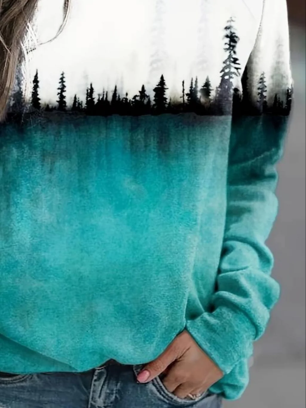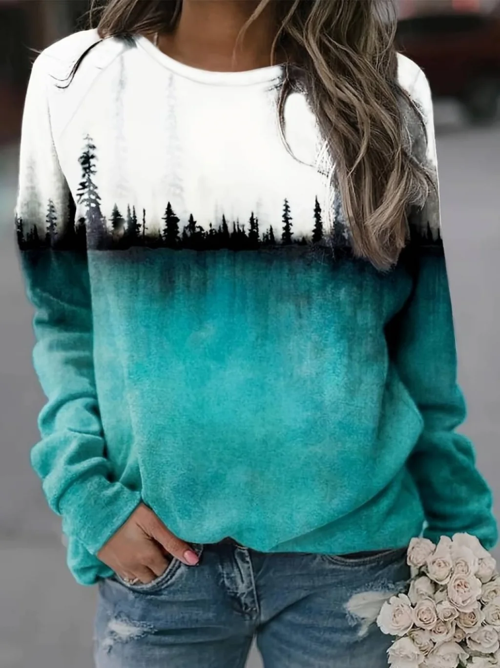 Kadın Uzun Kollu Baskılı şardonlu Dalgıç Bluz