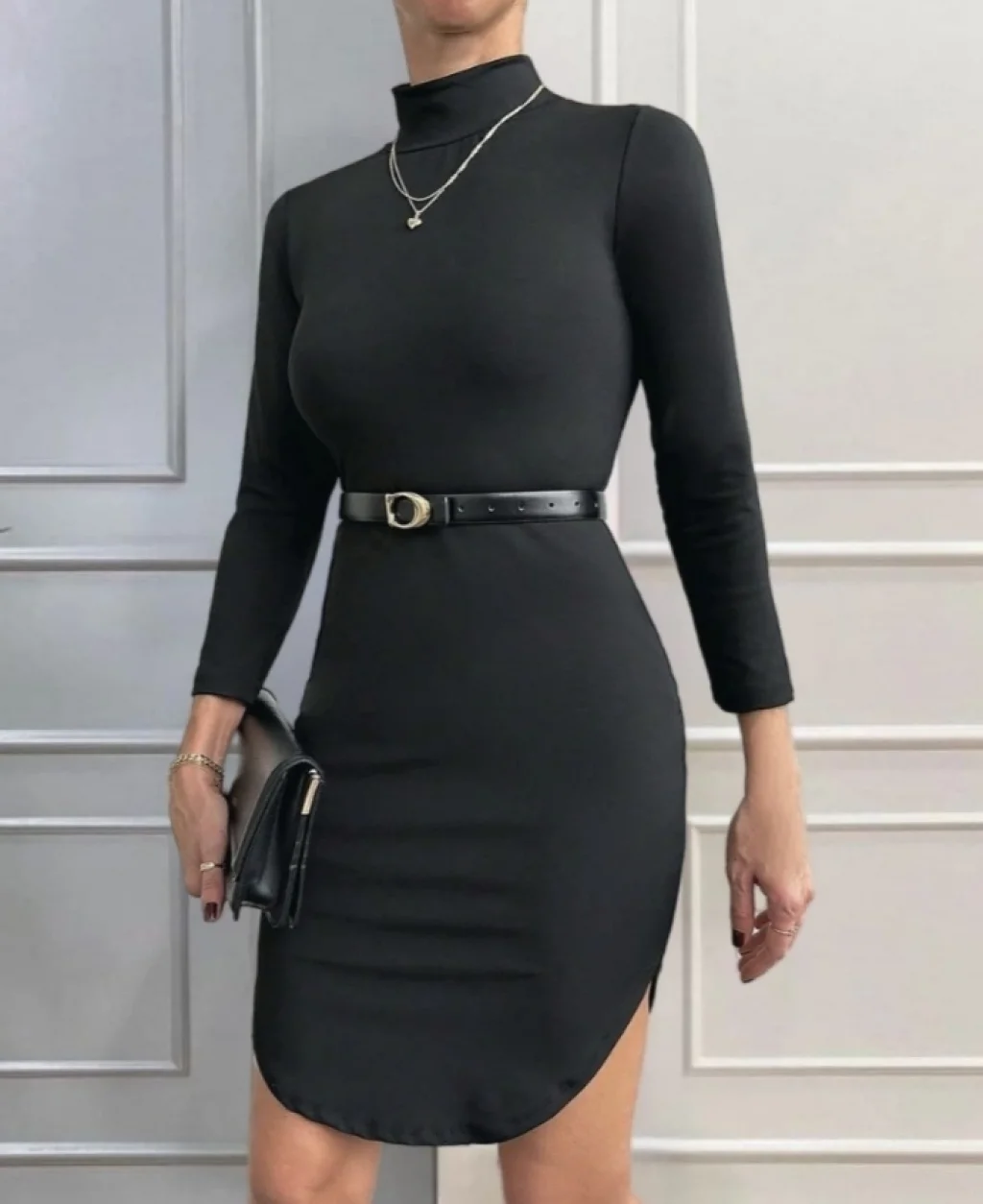 Kadın Uzun Kollu Balıkcı Yaka Elbise(kemersiz)