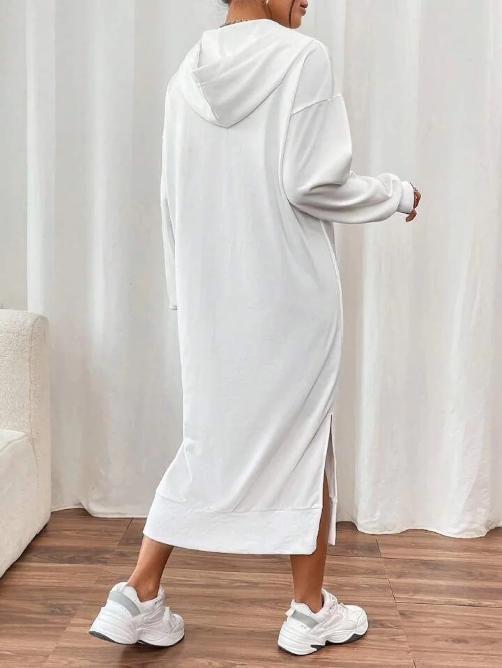 Kadın Uzun Kollu Kapüşonlu Yakası Açık Modal Elbise