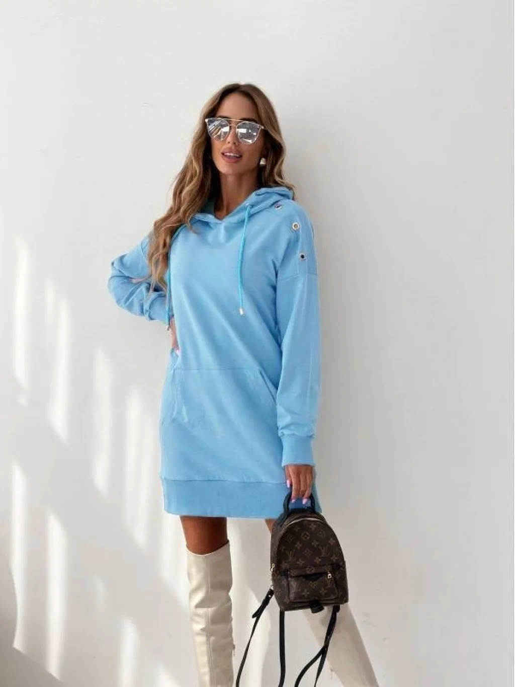 Kadın Kanguru Cep Kapüşonlu Iki Iplik Tunik Elbise