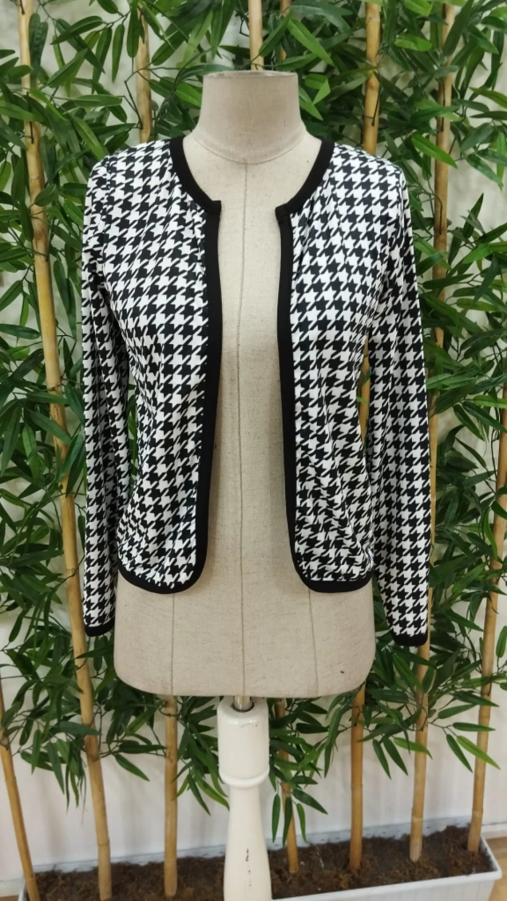 Kadın Uzun Kollu Kaz Ayağı Desenli şardonlu Dalgıç Ceket