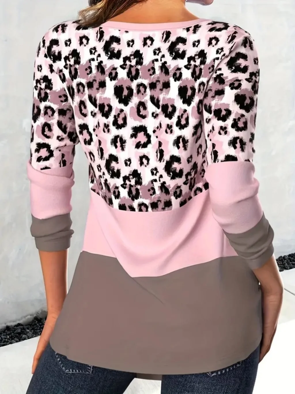 Kadın Uzun Kollu Yarı Balıkçı Yaka Leopar Detaylı Kaşkorse Bluz