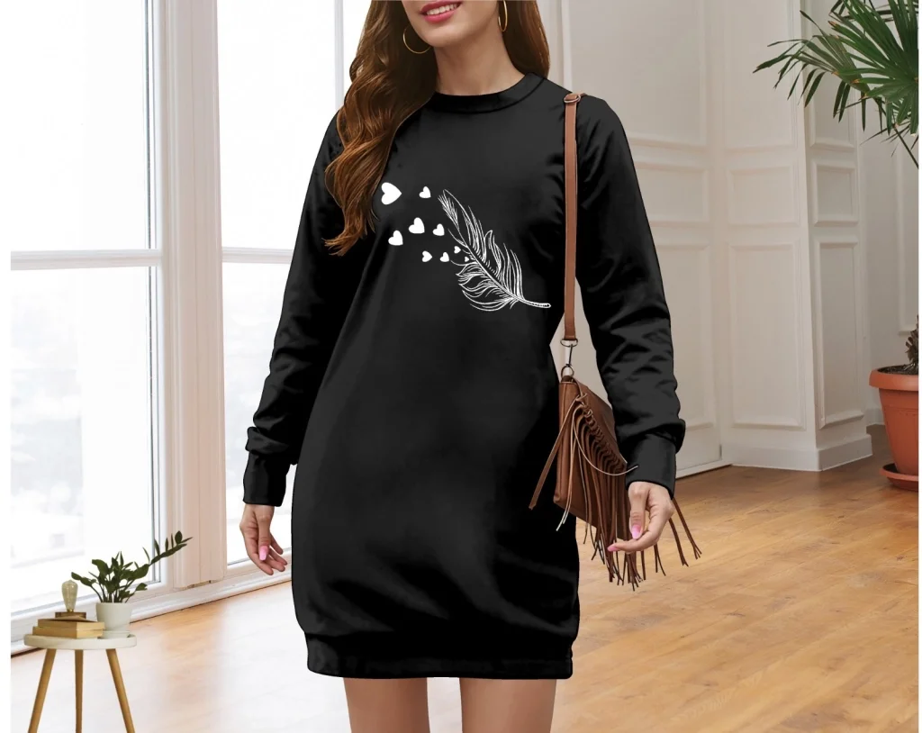 Kadın Uzun Kollu Bisiklet Yaka Desenli Viskon Iki Iplik Elbise