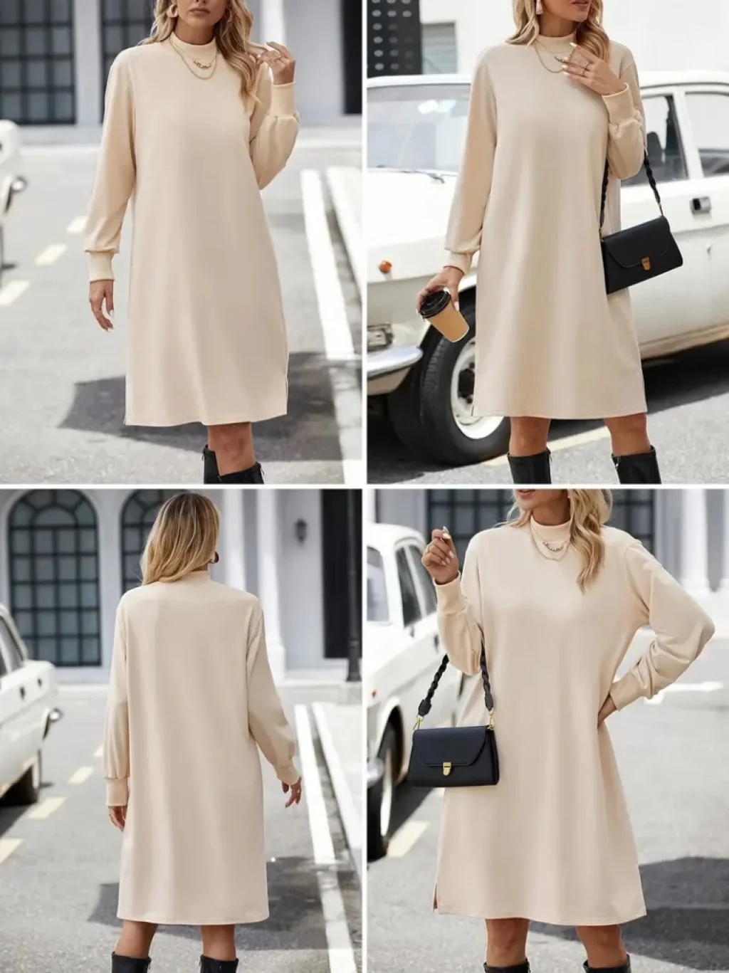 Kadın Uzun Kollu Balıkçı Yaka Uzun Akrilik Elbise