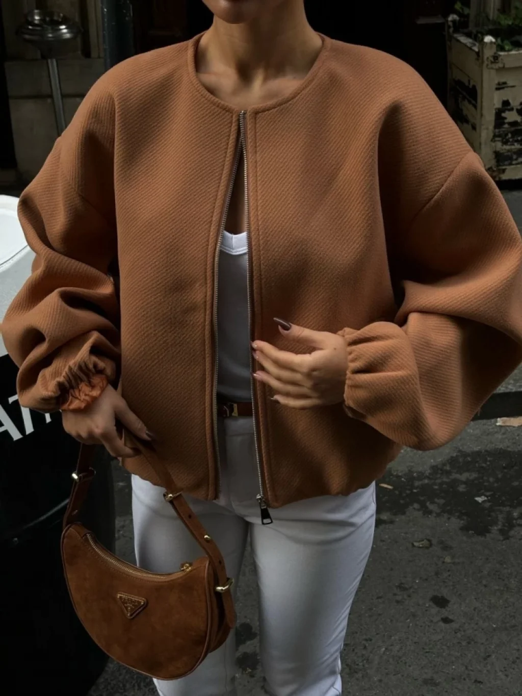 Kadın Uzun Kollu önden Fermuarlı Balon Kol Süet Ceket