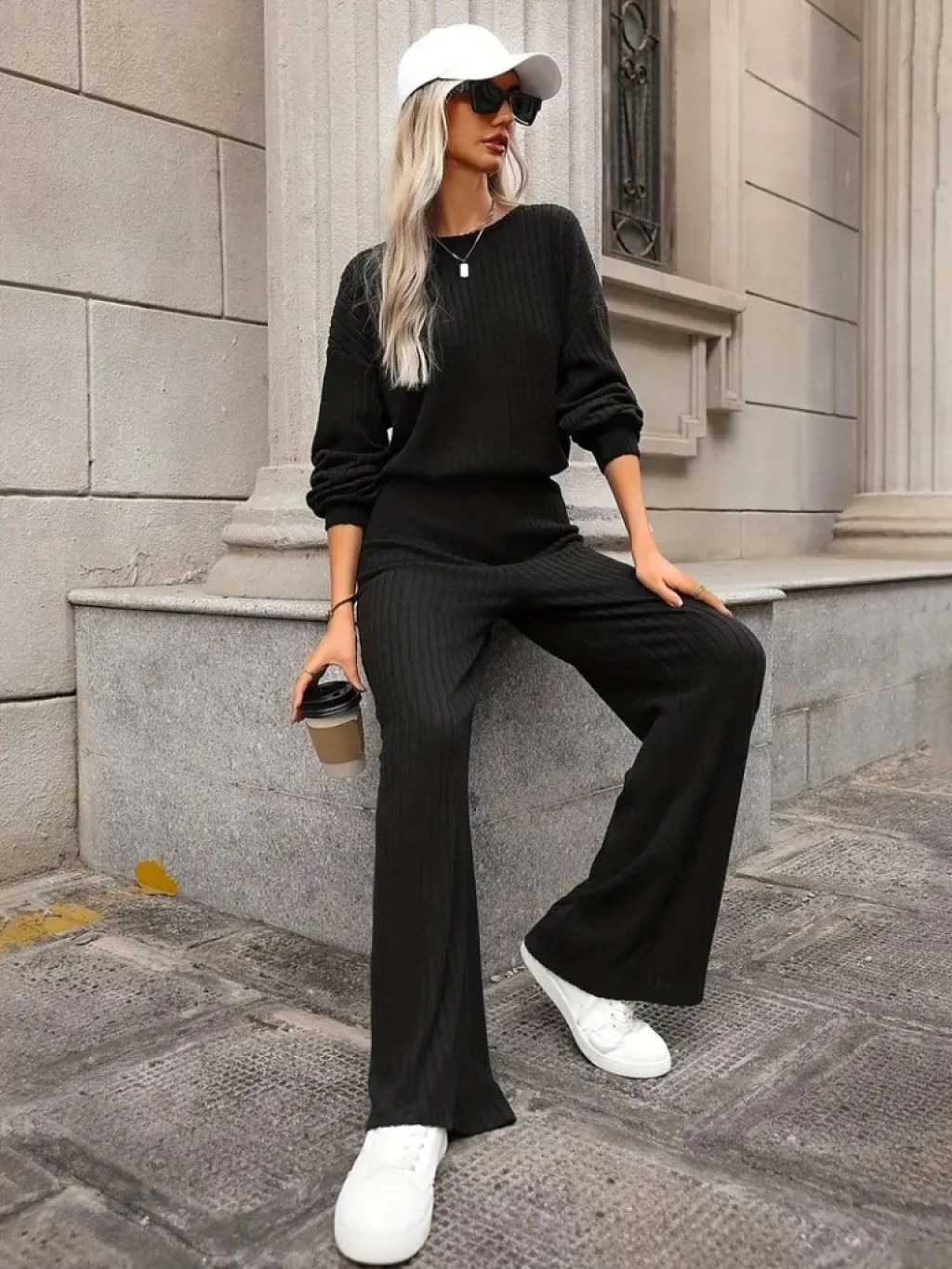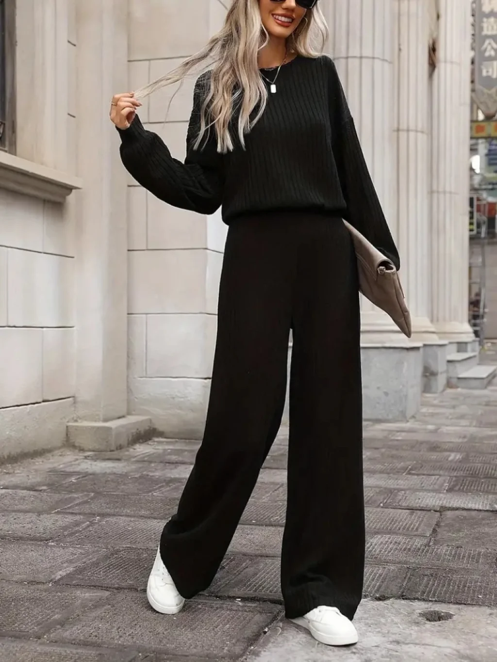 Kadın Uzun Kollu Bisiklet Yaka şardonlu Dalgıç Bluz Ve Pantolon Ikili Takım