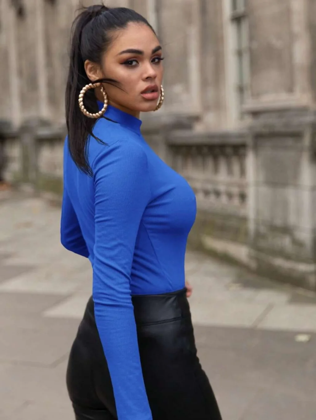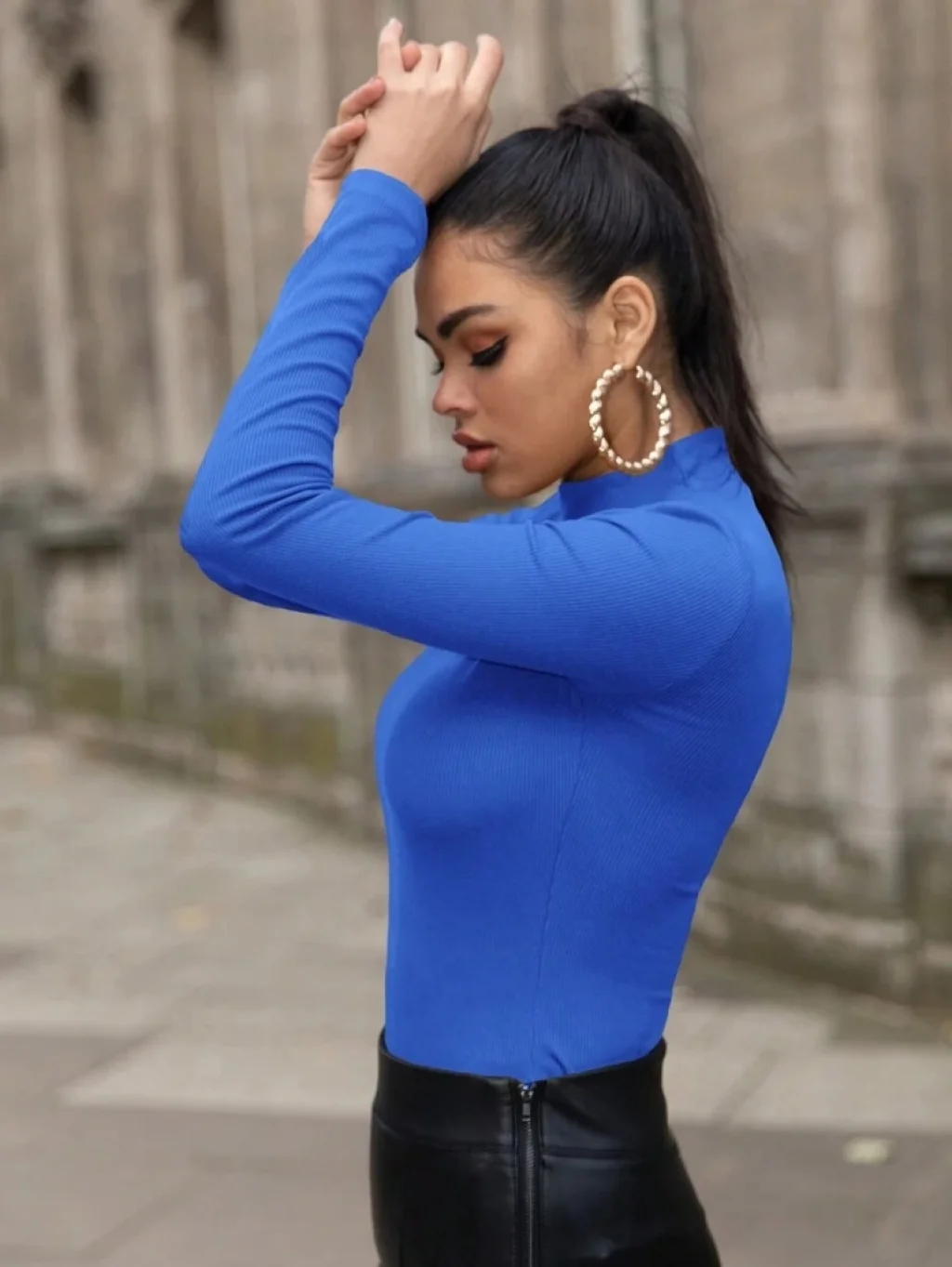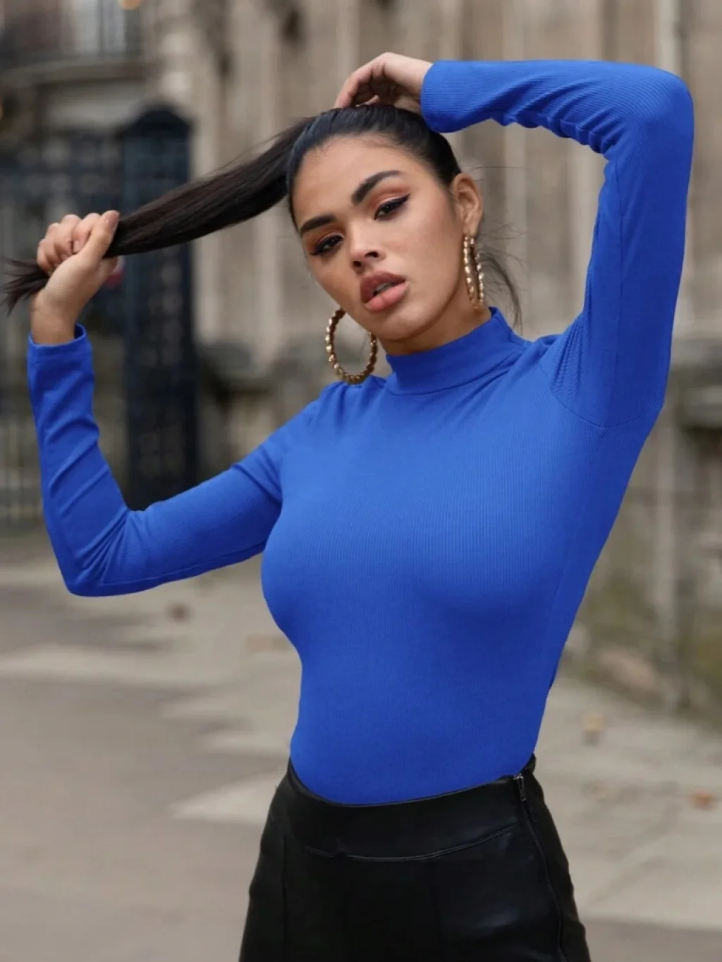 Kadın Uzun Kollu Bisiklet Yaka Triko Bluz