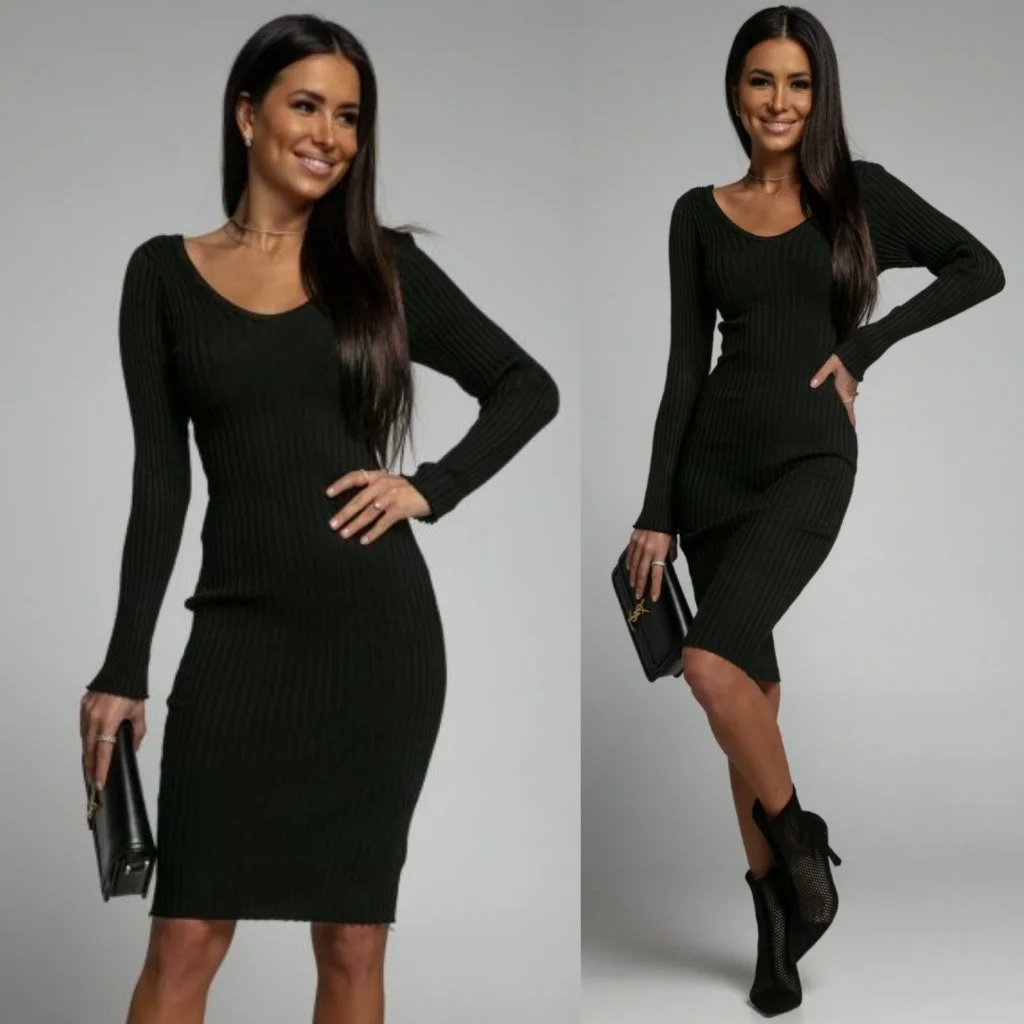 Kadın Uzun Kollu V Yaka Triko Elbise