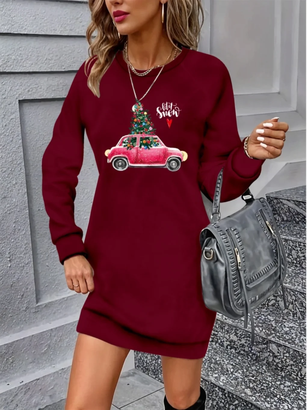 Kadın Uzun Kollu Bisiklet Yaka Desenli Viskon Iki Iplik Elbise