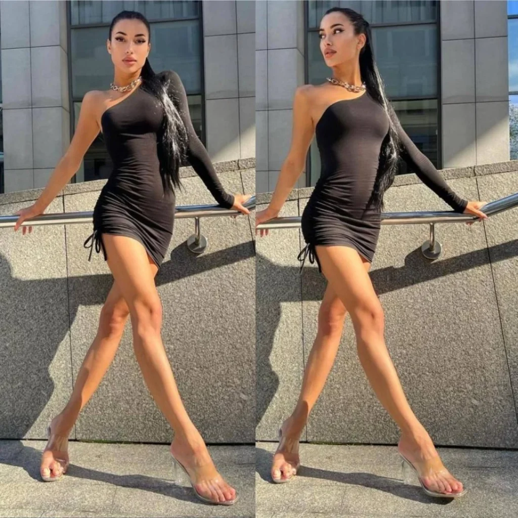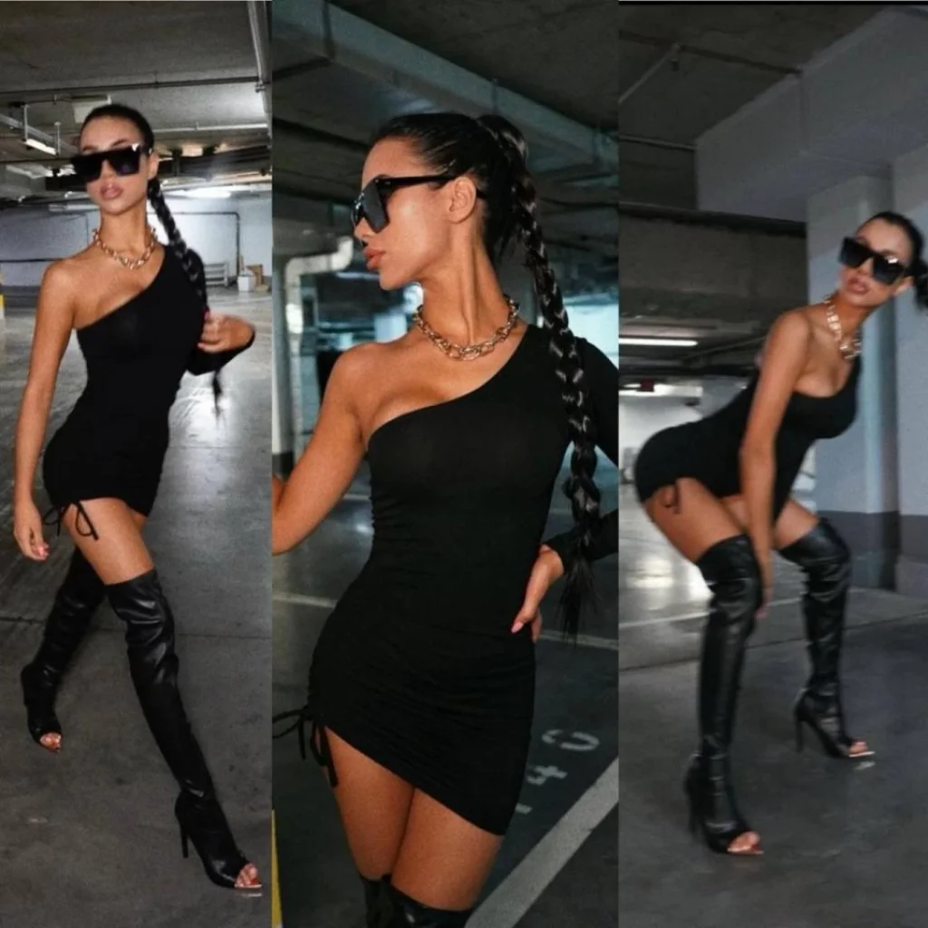 Kadın Omuz Dekolteli Asansör Büzgü Detay Fırsat ürün Mini Siyah Elbise