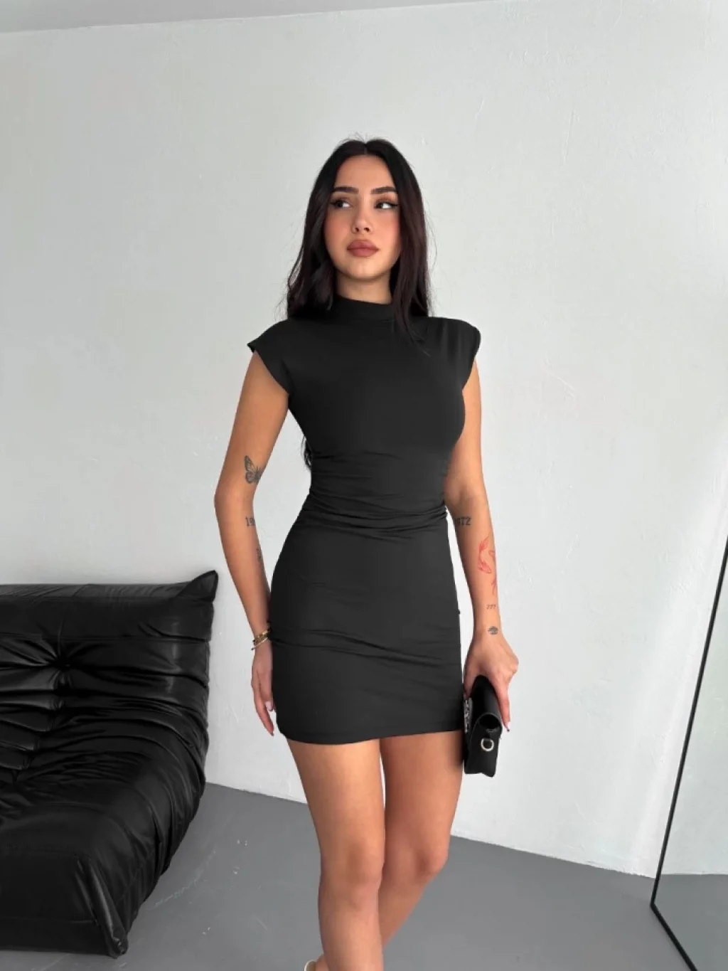 Yarım Bogazlı Kolsuz Mini Boy Elbise - Siyah