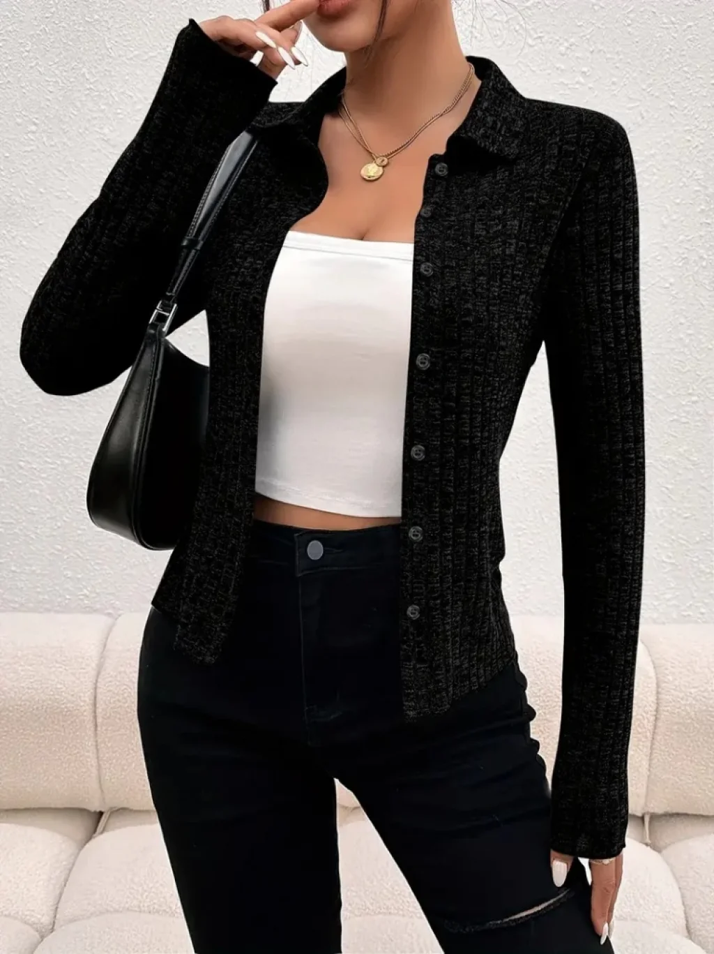 Kadın Uzun Kollu Yakalı önden Düğmeli Kısa Ceket