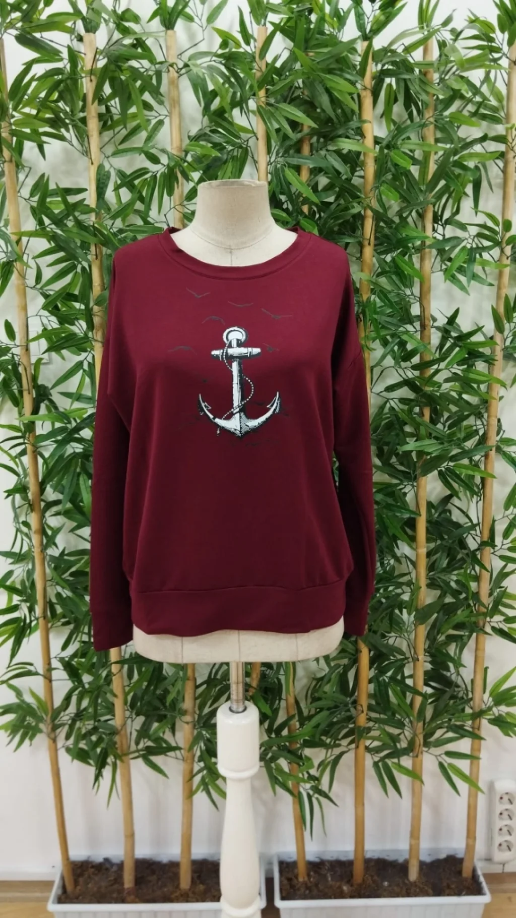Kadın Uzun Kollu Bisiklet Yaka Desenli Viskon Iki Iplik Bluz