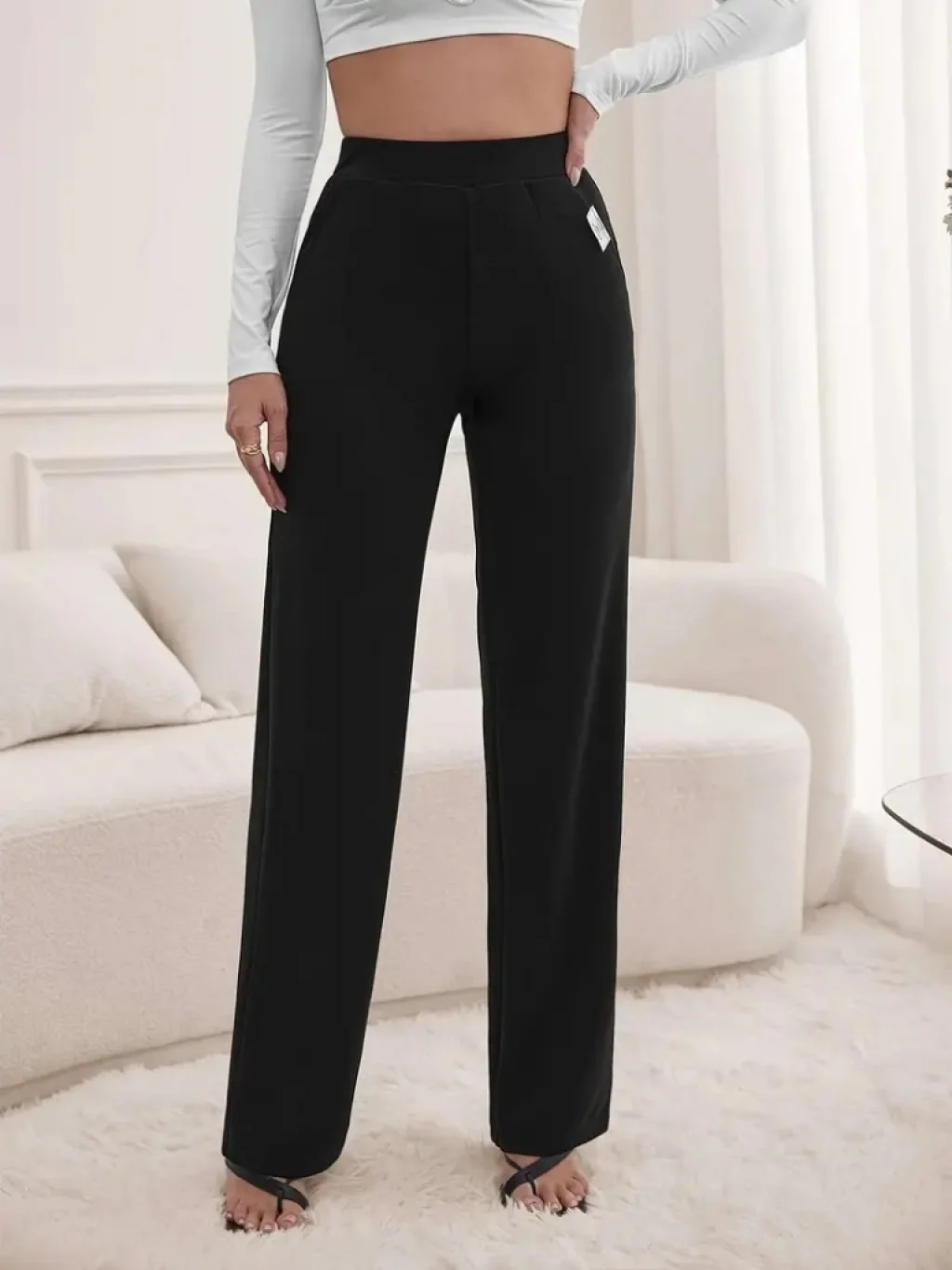 Kadın Yüksek Bel Cepli Geniş Kesim Ithal Krep Pantolon