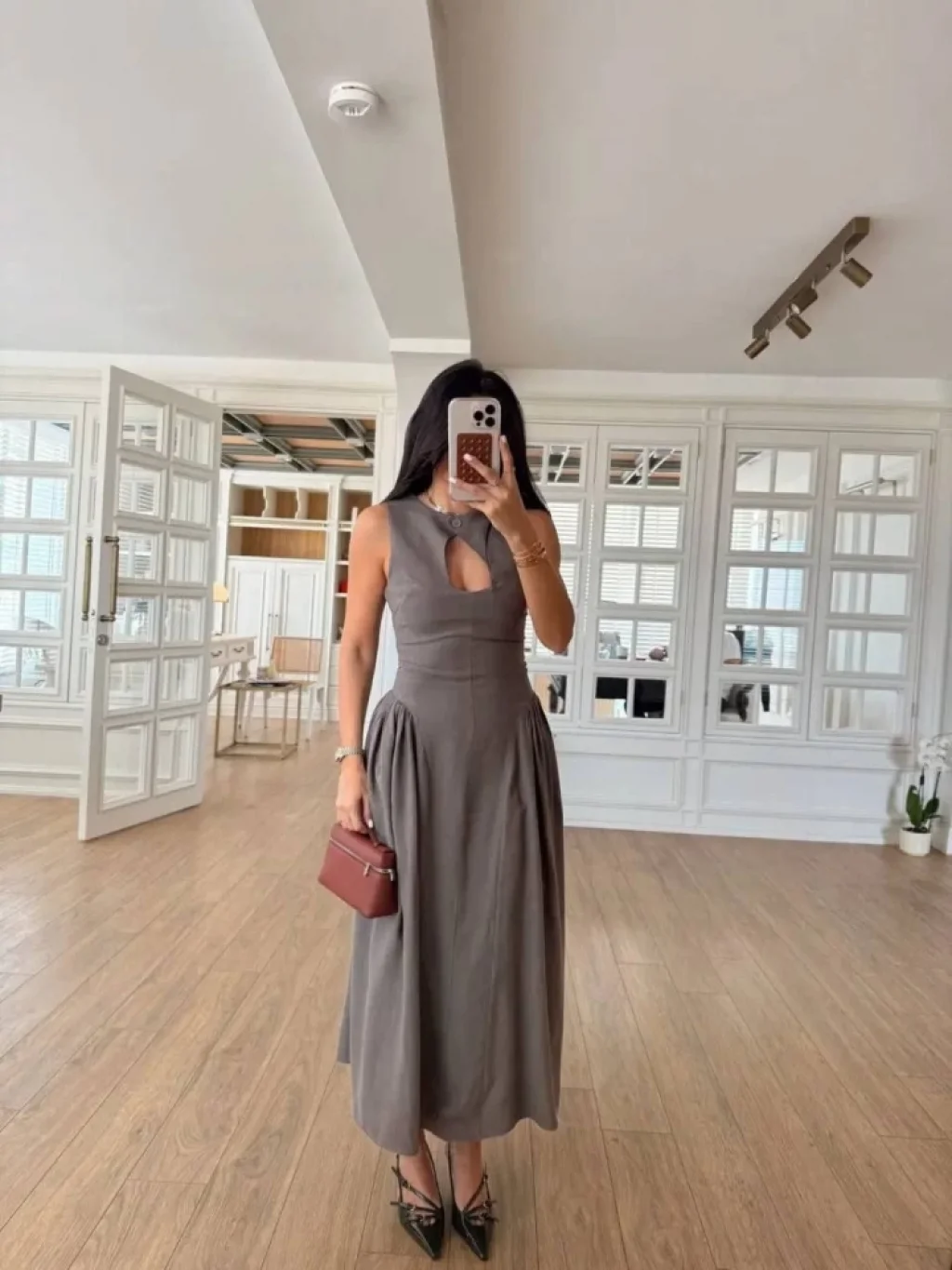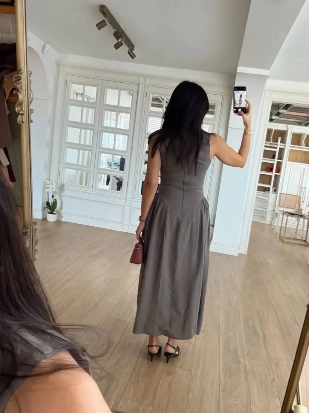 <p>Kolsuz Uzun Kabardin Elbise - Gri</p><br> <p>Modelin Ölçüleri: Boy:165, Kg:55, Göğüs:90, Bel:72, Kalça: 100</p><br> <p>Modelin üzerindeki ürün M/38 bedendir</p><br> <ul> </ul>