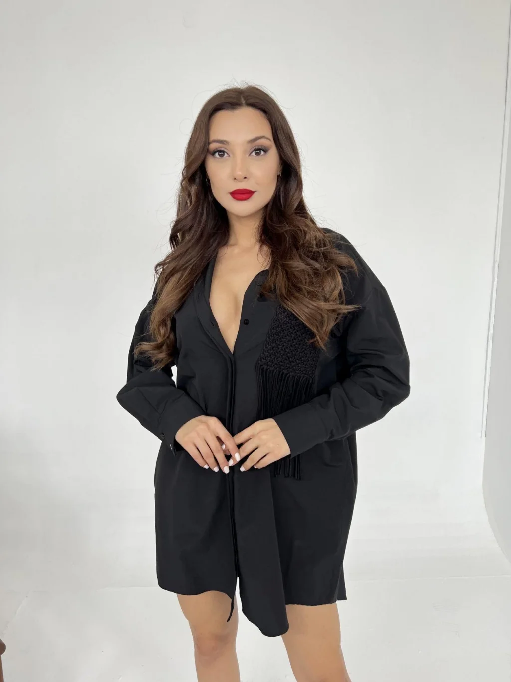 <p>6309 GÖMLEK-SİYAH</p><br> <p>Modelin Ölçüleri: Boy:165, Kg:55, Göğüs:90, Bel:72, Kalça: 100</p><br> <p>Modelin üzerindeki ürün M/38 bedendir</p><br> <ul> </ul>