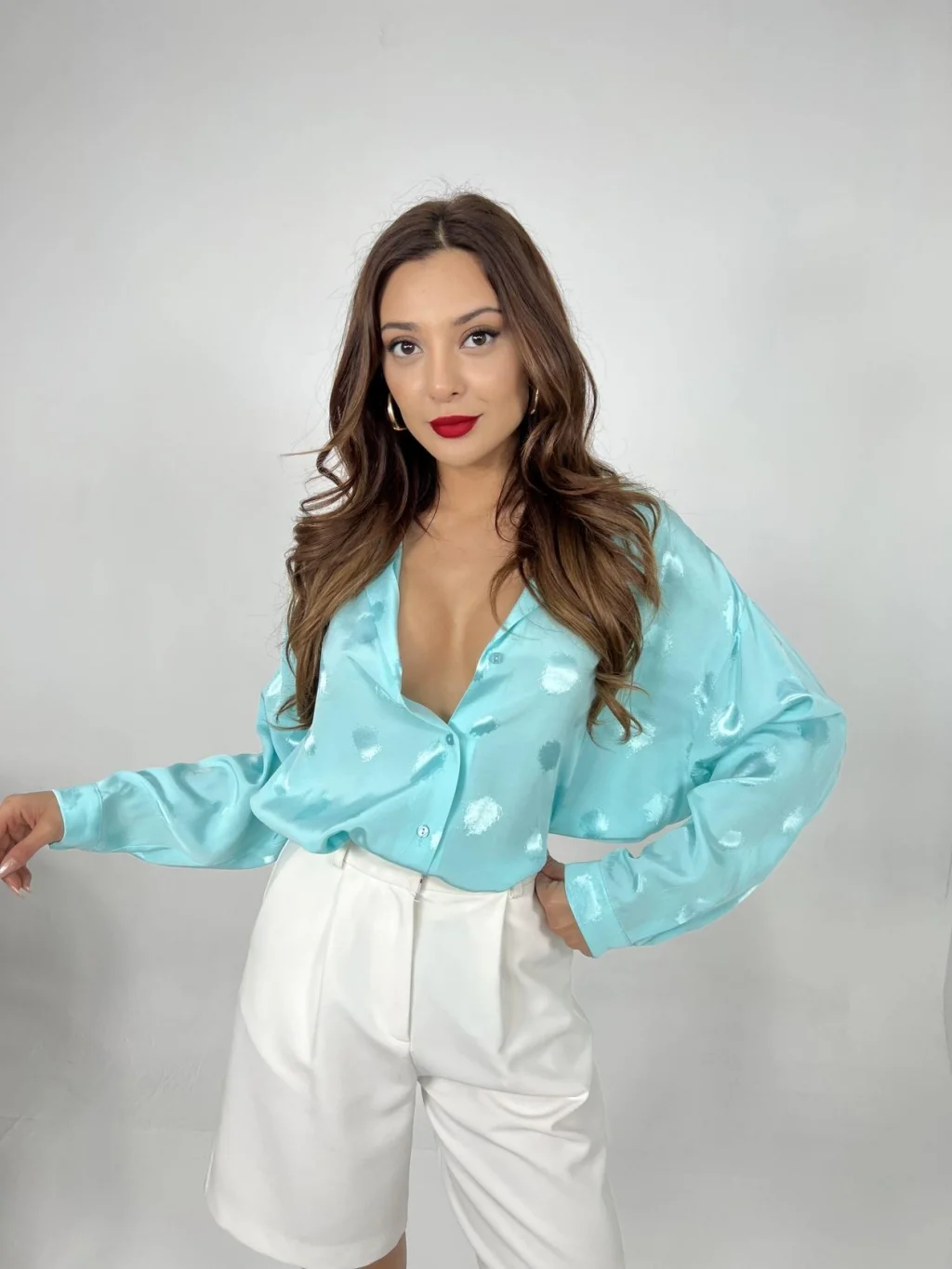 Kadın Dokuma Viskon Kumaş V Yaka Dekolte Ve Metal Düğme Detaylı Gömlek