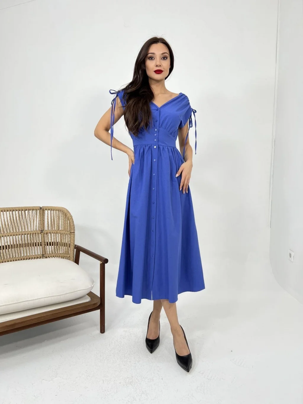 Kadın Uzun Kollu Balıkçı Yaka Yırtmaçlı Düğmeli şardonlu Kaşkorse Elbise