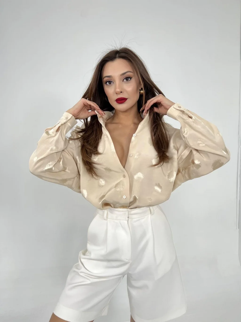 Kadın Dokuma Viskon Kumaş V Yaka Dekolte Ve Metal Düğme Detaylı Gömlek