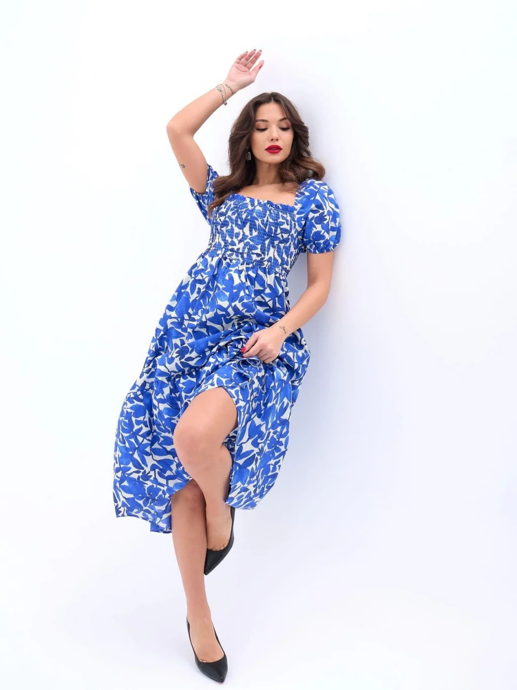 Kadın Uzun Kollu Kruvaze Yakalı Desenli Süprem Maxi Elbise