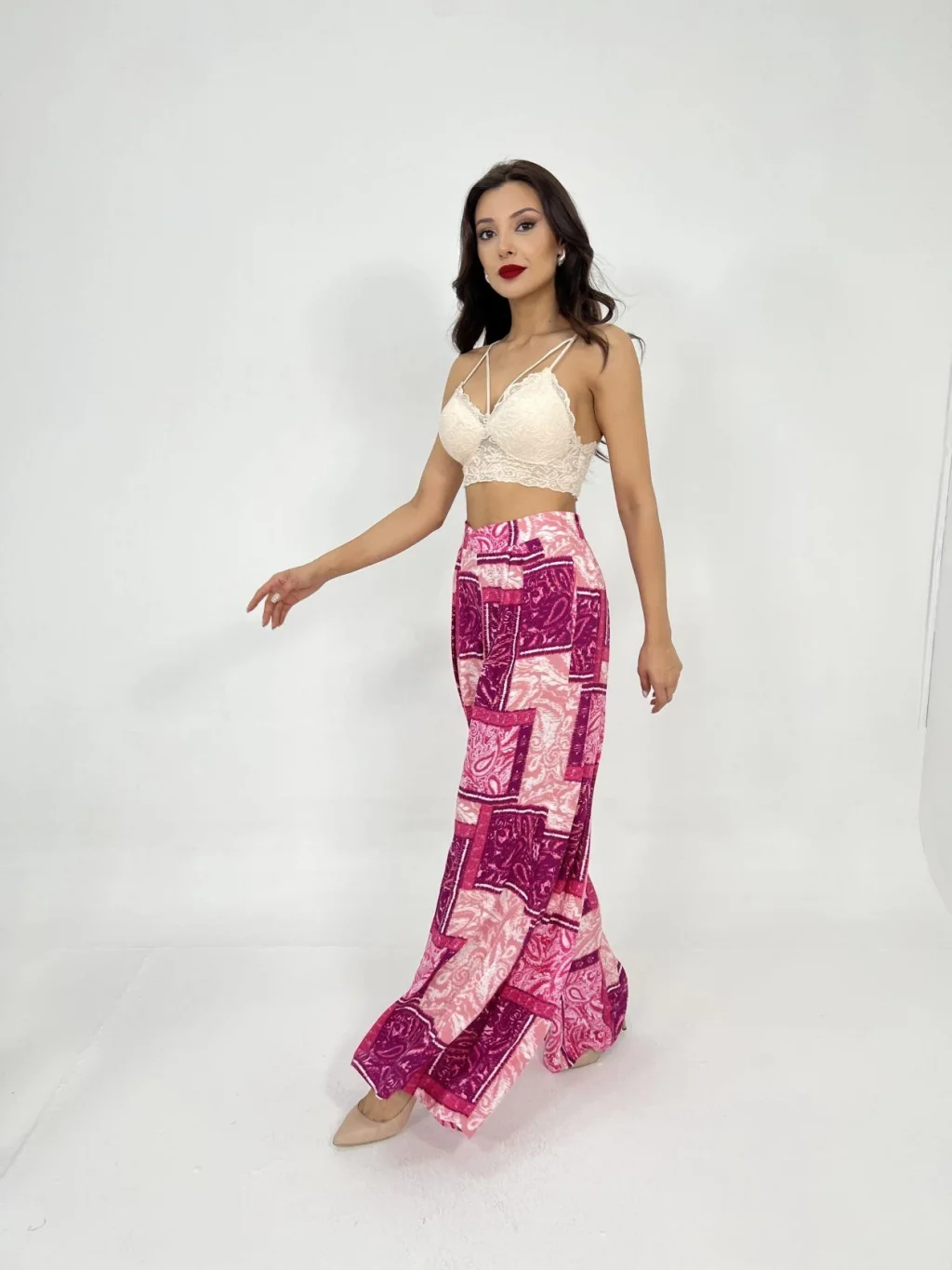 Kadın Yüksek Bel Kaz Ayağı Desenli Yan şerit Düğme Detaylı Dalgıç Pantolon