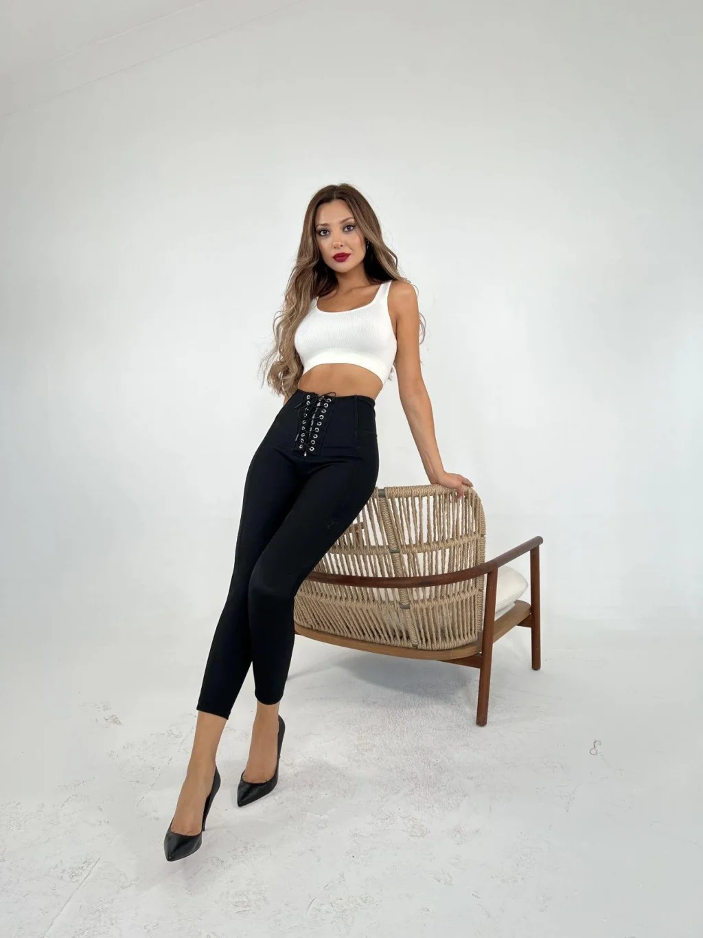 Kadın Yüksek Bel Yan şerit Detaylı Dalgıç Tayt