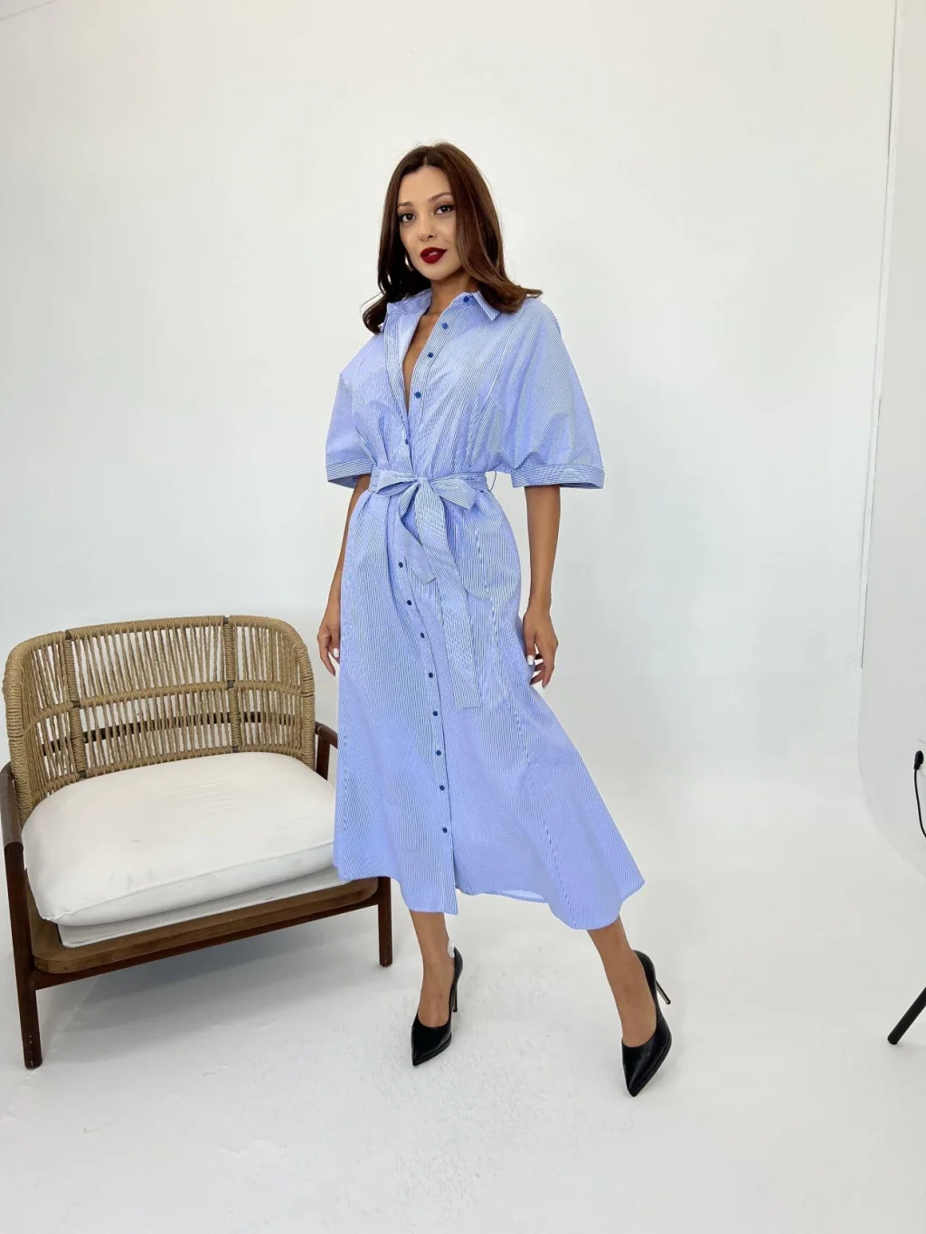 <p>5318 ELBİSE-MAVİ BEYAZ ÇİZGİLİ</p><br> <p>Modelin Ölçüleri: Boy:165, Kg:55, Göğüs:90, Bel:72, Kalça: 100</p><br> <p>Modelin üzerindeki ürün M/38 bedendir</p><br> <ul> </ul>