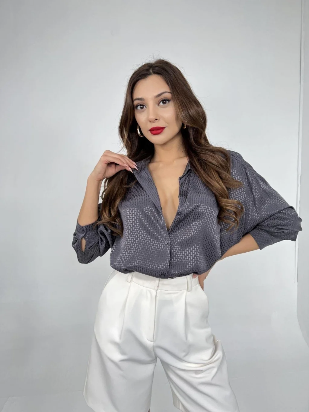 Kadın Dokuma Viskon Kumaş V Yaka Dekolte Ve Metal Düğme Detaylı Gömlek