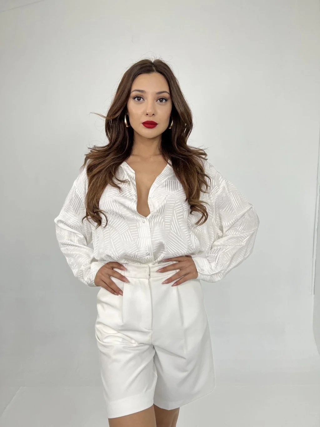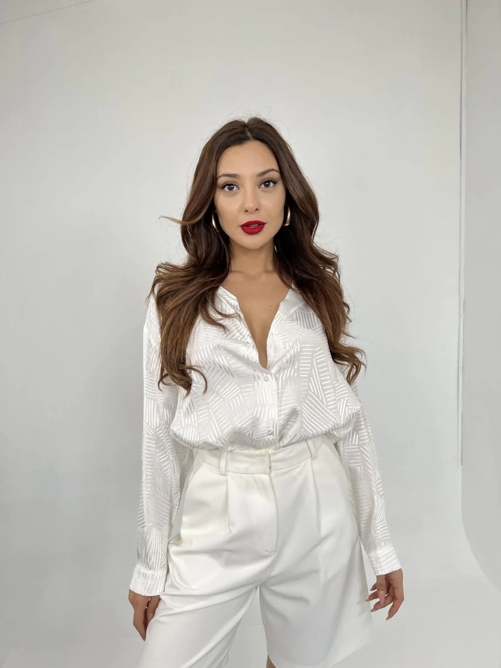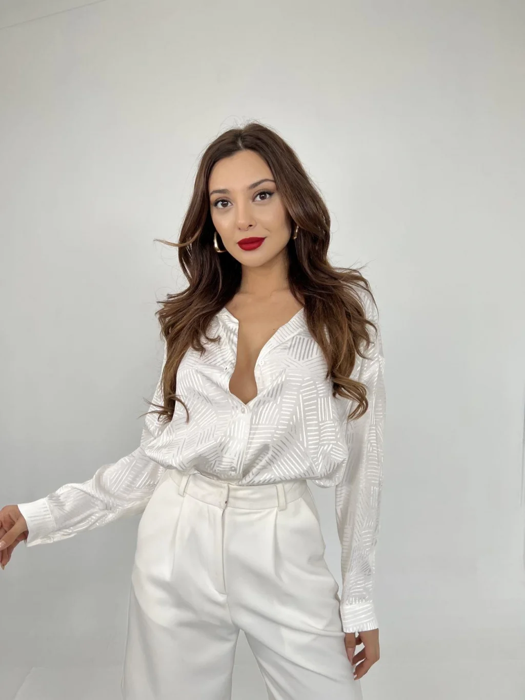 Kadın Dokuma Viskon Kumaş V Yaka Dekolte Ve Metal Düğme Detaylı Gömlek