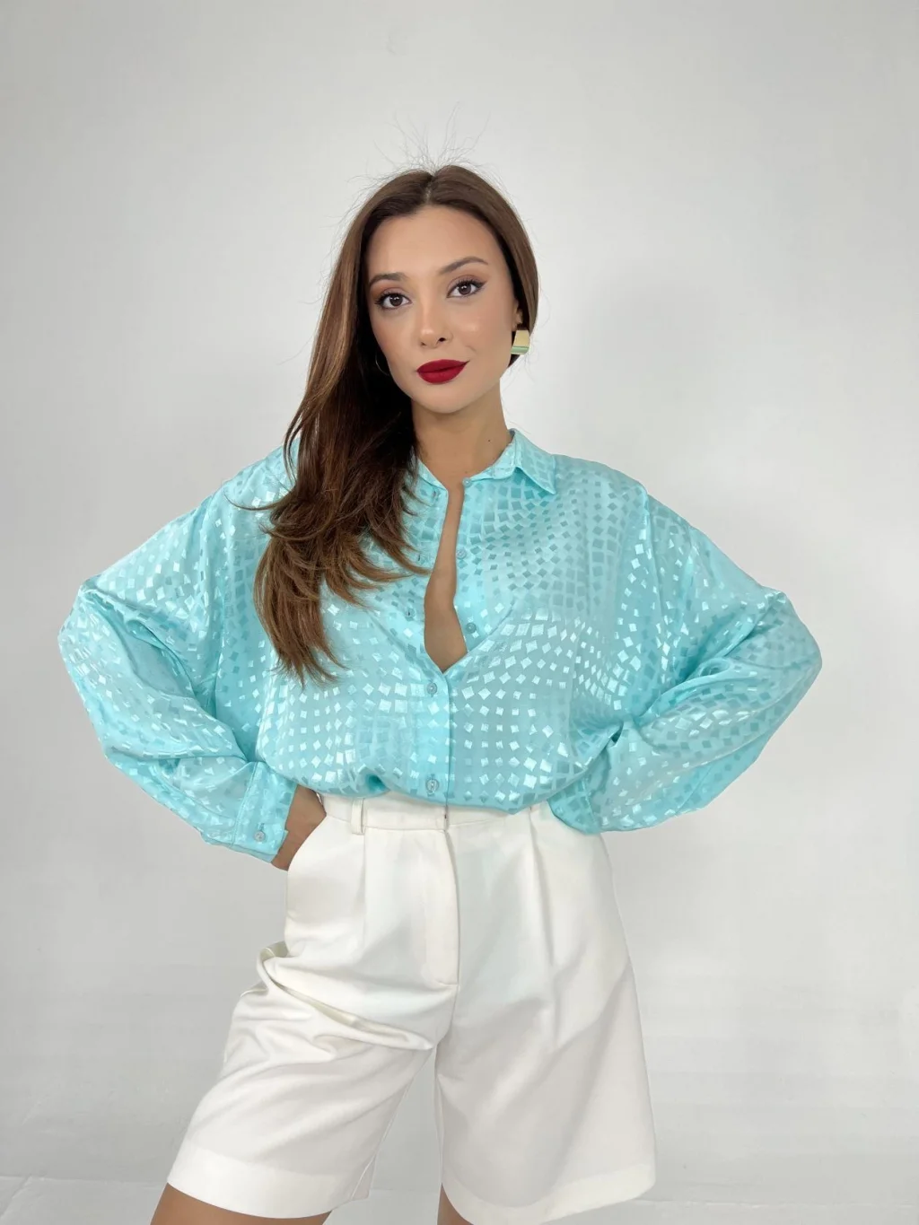 Kadın Dokuma Viskon Kumaş V Yaka Dekolte Ve Metal Düğme Detaylı Gömlek