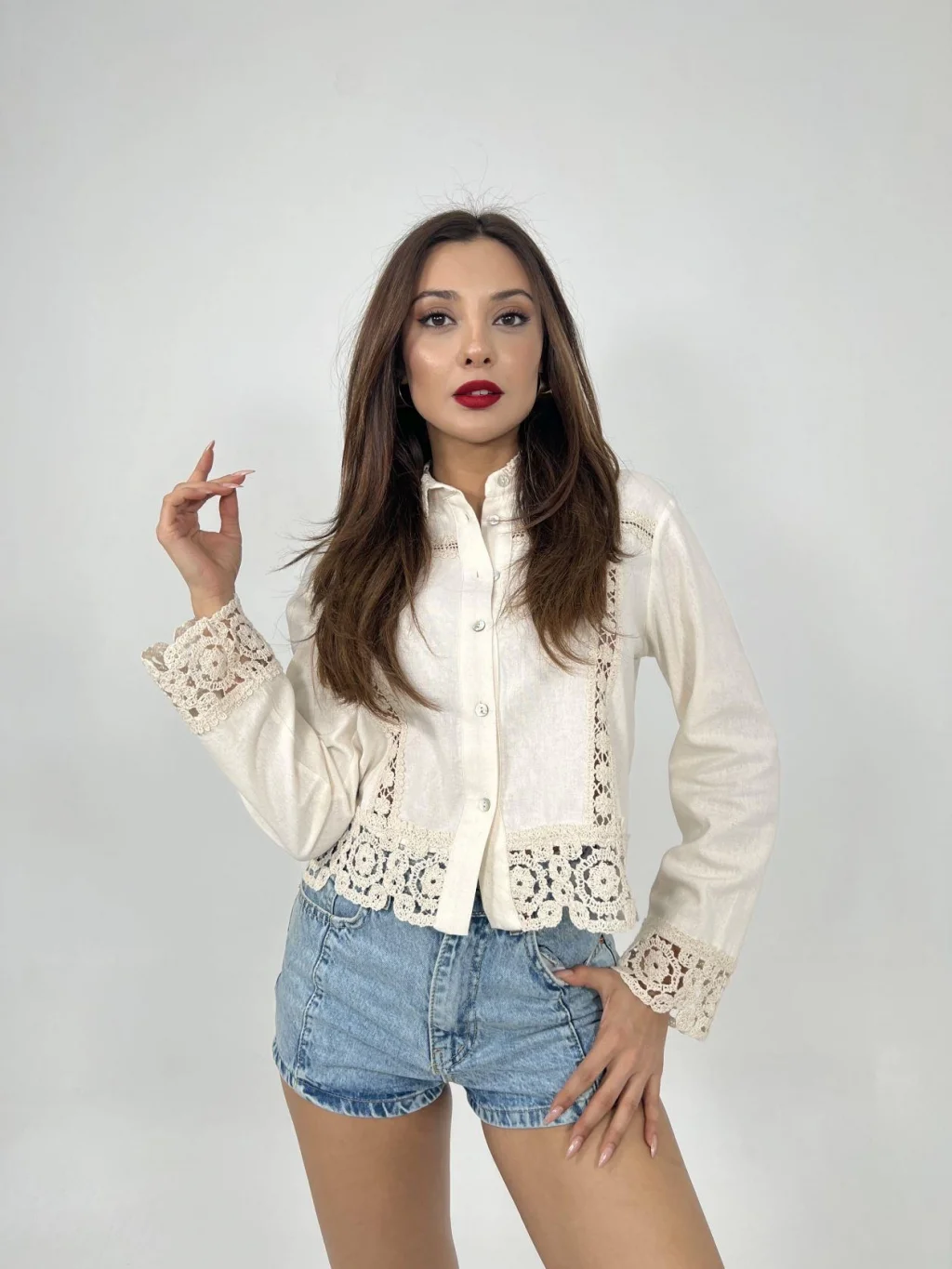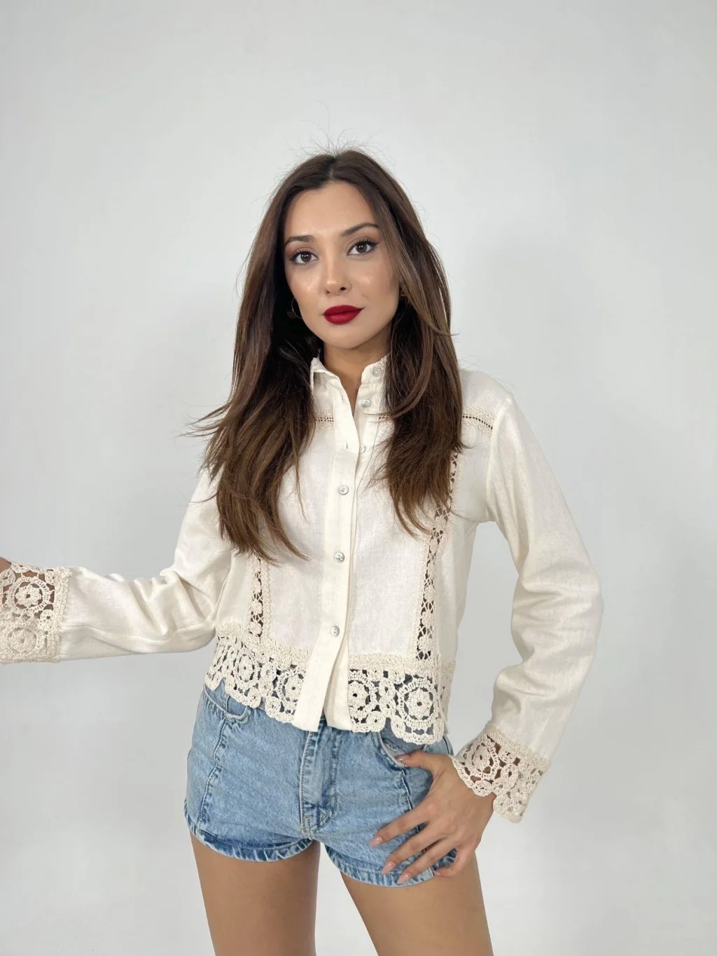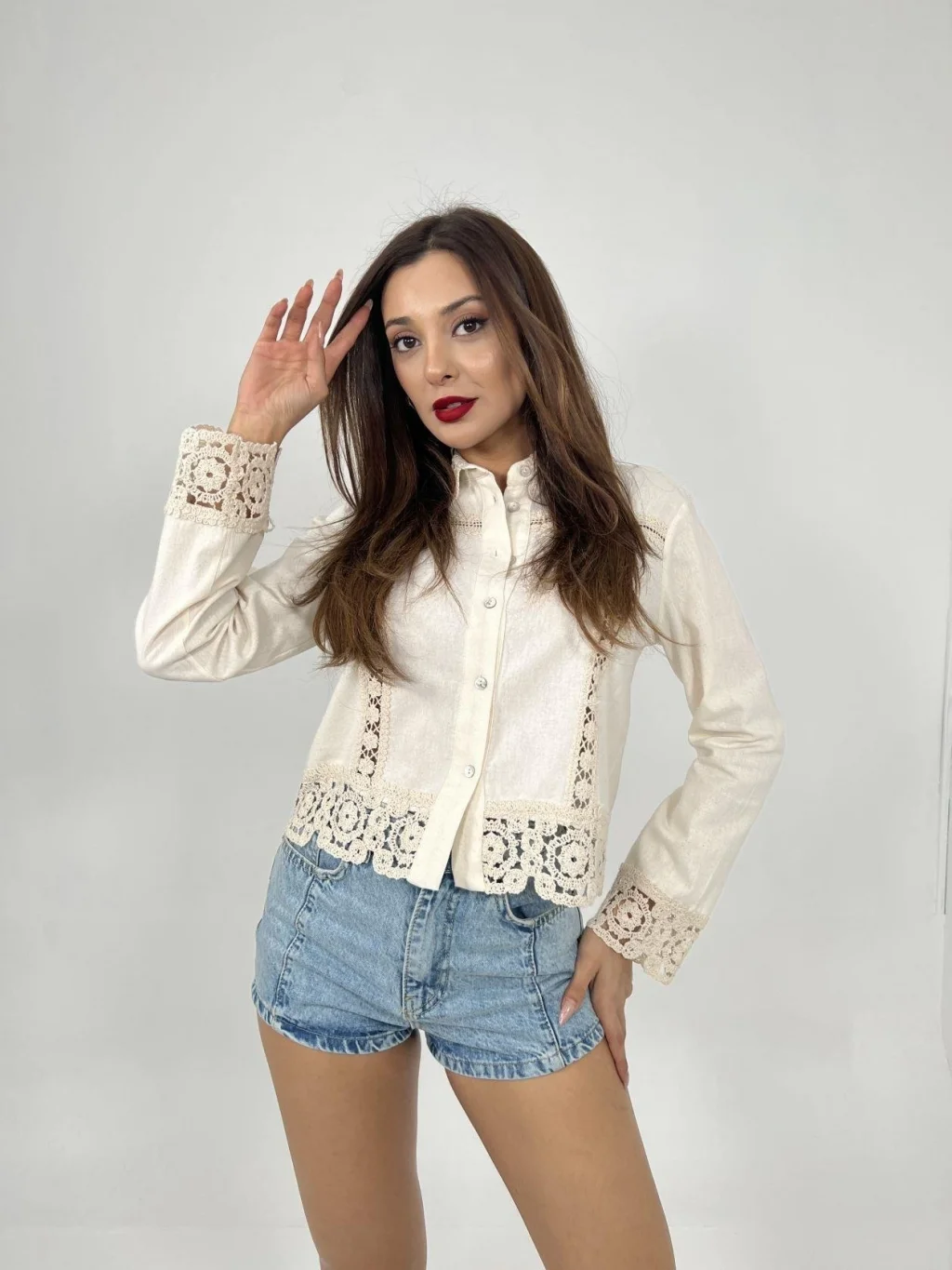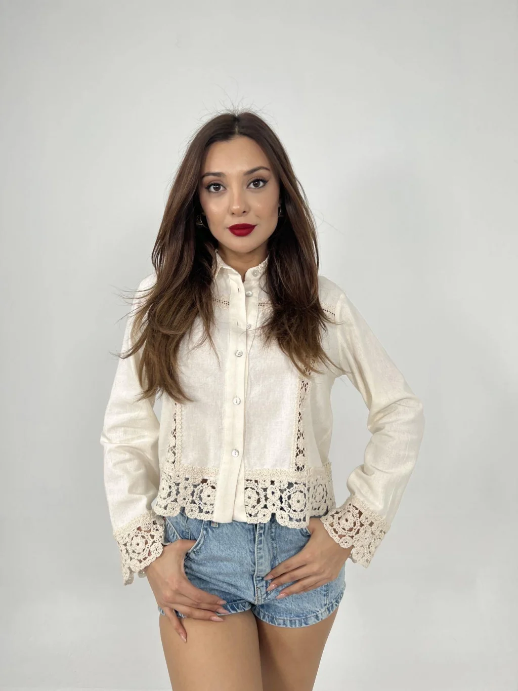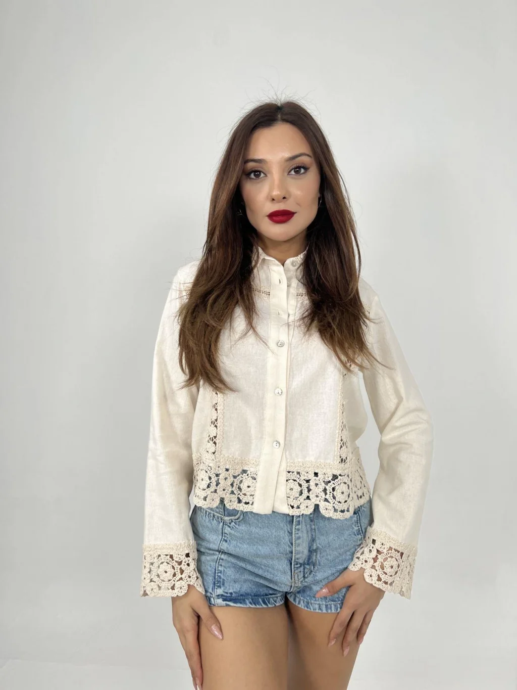 <p>6424 GÖMLEK-BEJ</p><br> <p>Modelin Ölçüleri: Boy:165, Kg:55, Göğüs:90, Bel:72, Kalça: 100</p><br> <p>Modelin üzerindeki ürün M/38 bedendir</p><br> <ul> </ul>