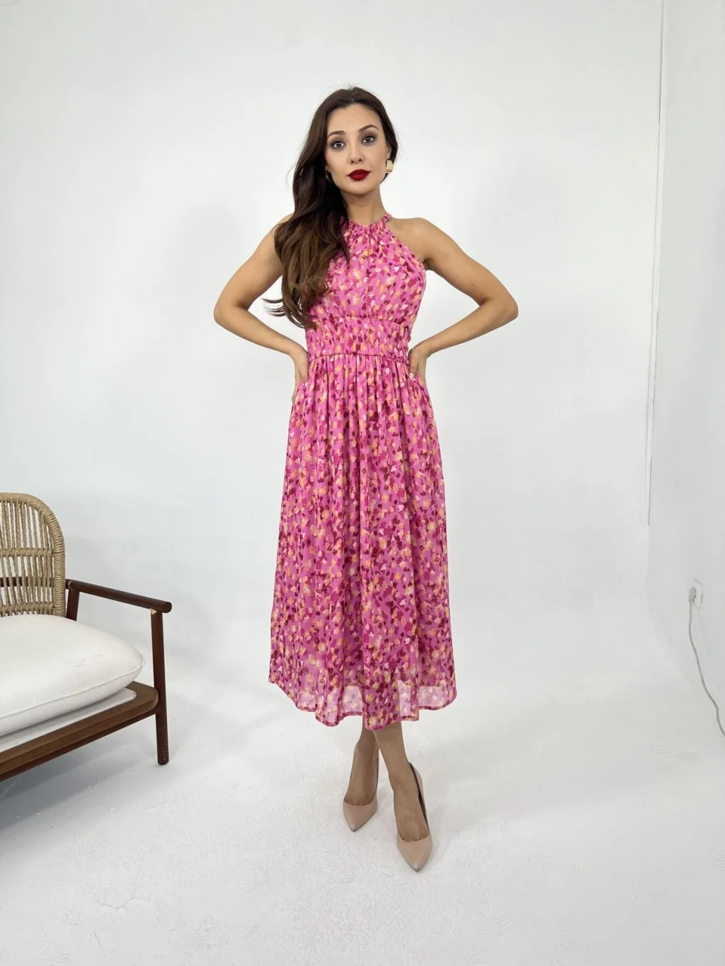 Kadın Uzun Kollu Geometrik Yaka Midi Ithal Krep Elbise