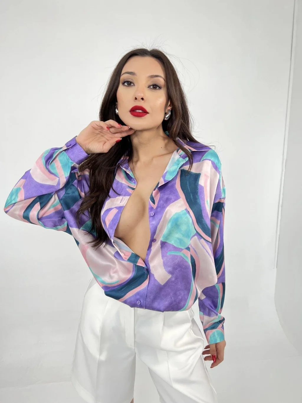 Kadın Dokuma Viskon Kumaş V Yaka Dekolte Ve Metal Düğme Detaylı Gömlek