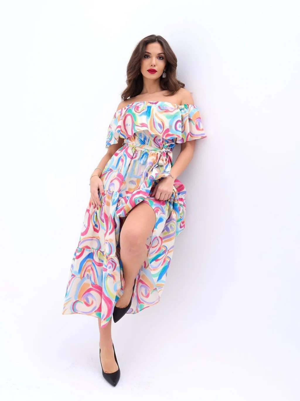 Kadın Uzun Kollu Kruvaze Yakalı Desenli Süprem Maxi Elbise