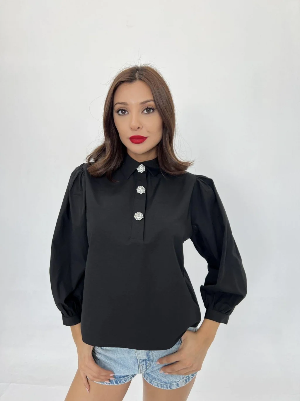 <p>7043 GÖMLEK-SİYAH</p><br> <p>Modelin Ölçüleri: Boy:165, Kg:55, Göğüs:90, Bel:72, Kalça: 100</p><br> <p>Modelin üzerindeki ürün M/38 bedendir</p><br> <ul> </ul>