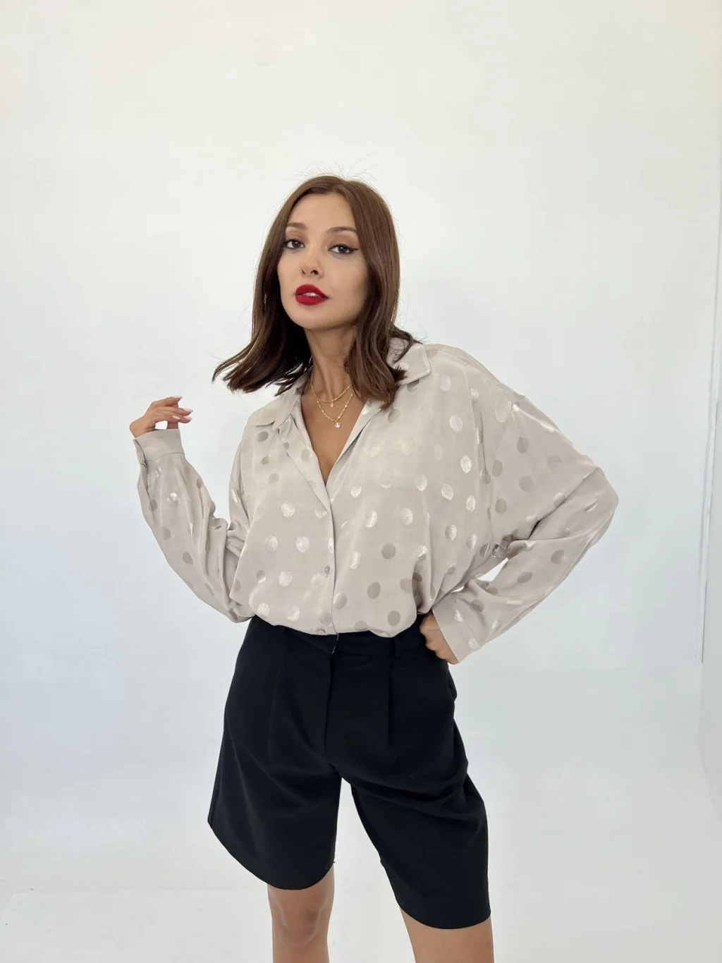 Kadın Dokuma Viskon Kumaş V Yaka Dekolte Ve Metal Düğme Detaylı Gömlek