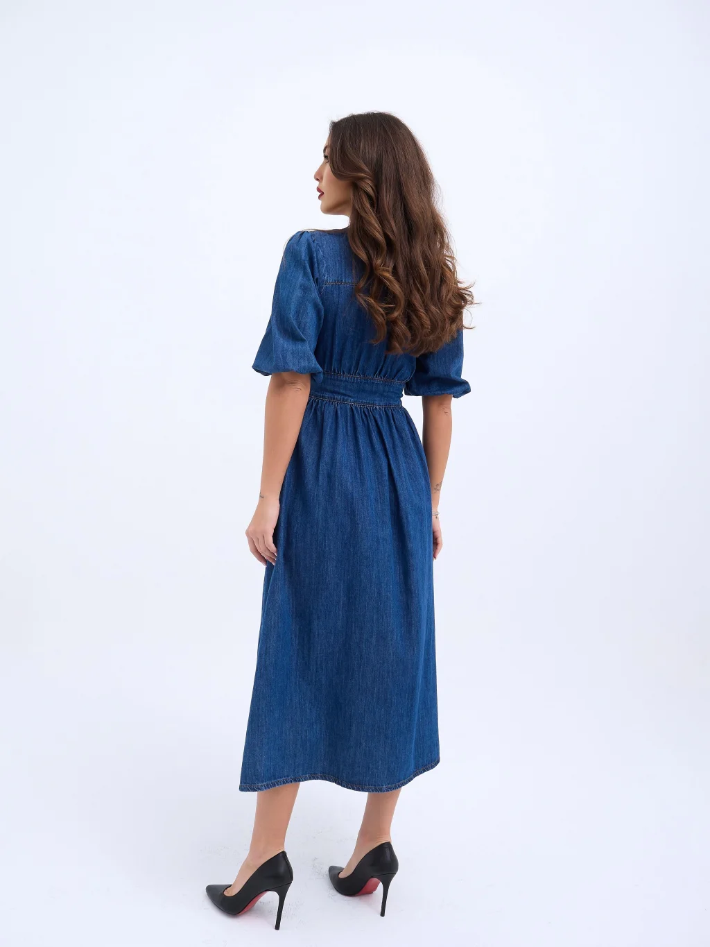 Kadın Kısa Kollu V Yakalı önden Düğmeli Bürümcük Midi Elbise