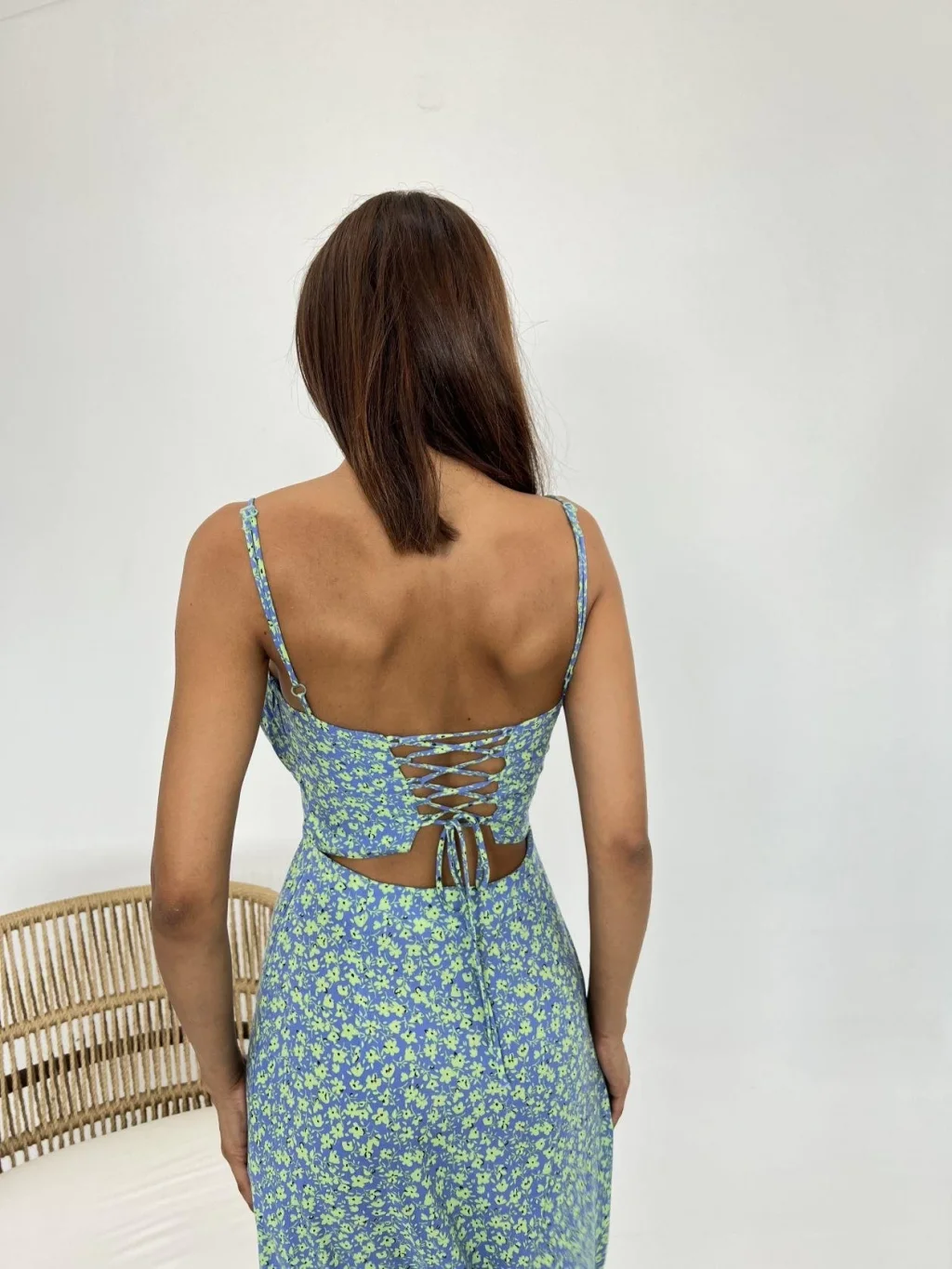 Kadın Uzun Kollu Yakalı Yandan Bağlamalı Mini Desenli Modal Elbise