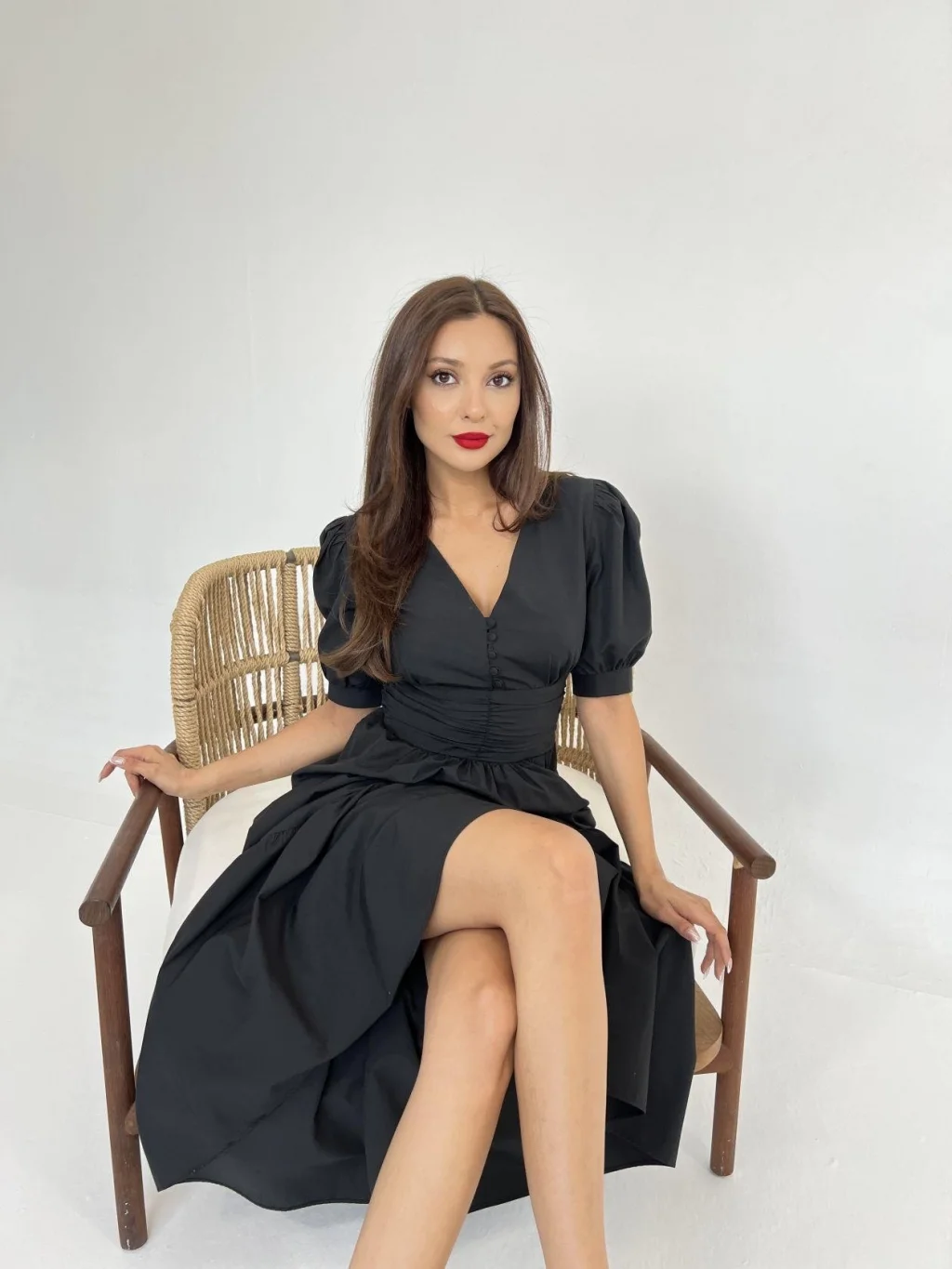 <p>6411 ELBİSE-SİYAH</p><br> <p>Modelin Ölçüleri: Boy:165, Kg:55, Göğüs:90, Bel:72, Kalça: 100</p><br> <p>Modelin üzerindeki ürün M/38 bedendir</p><br> <ul> </ul>