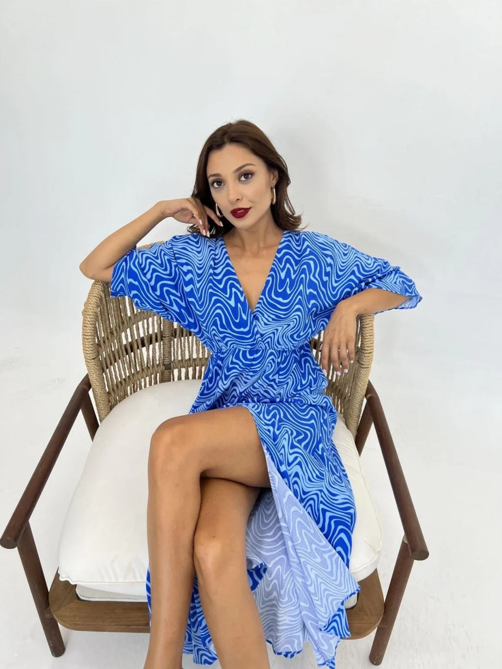 Kadın Uzun Kollu Kruvaze Yakalı Desenli Süprem Maxi Elbise