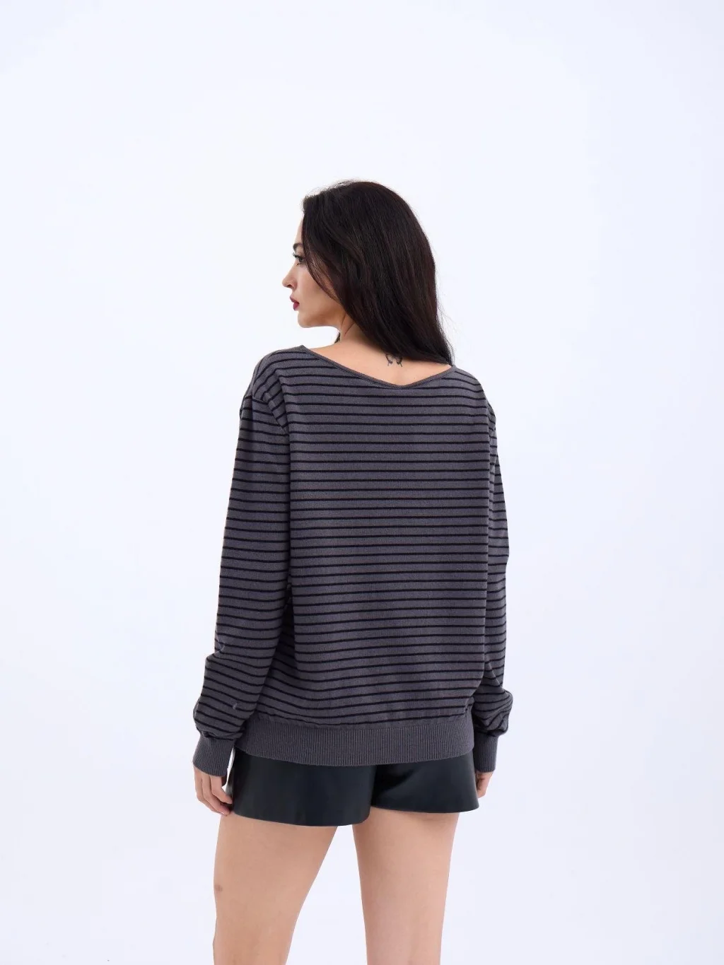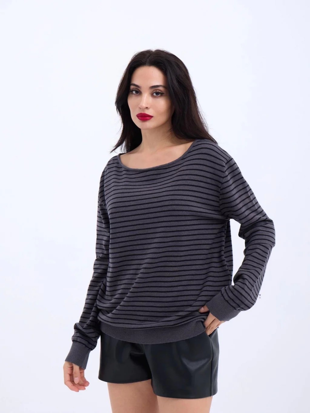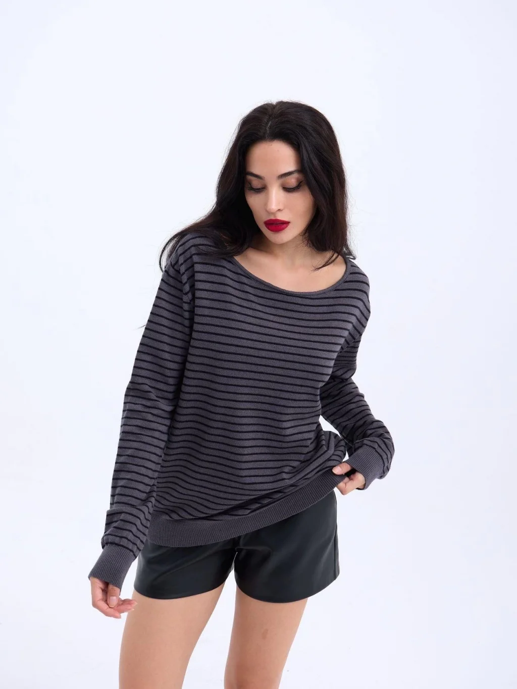 4215 TRİKO ÇİZGİLİ SALAŞ KAZAK-ANTRASİT-SİYAH