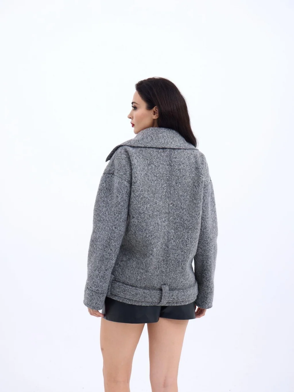 Kadın Uzun Kollu Yakalı Düğmeli Süet Mini Manto